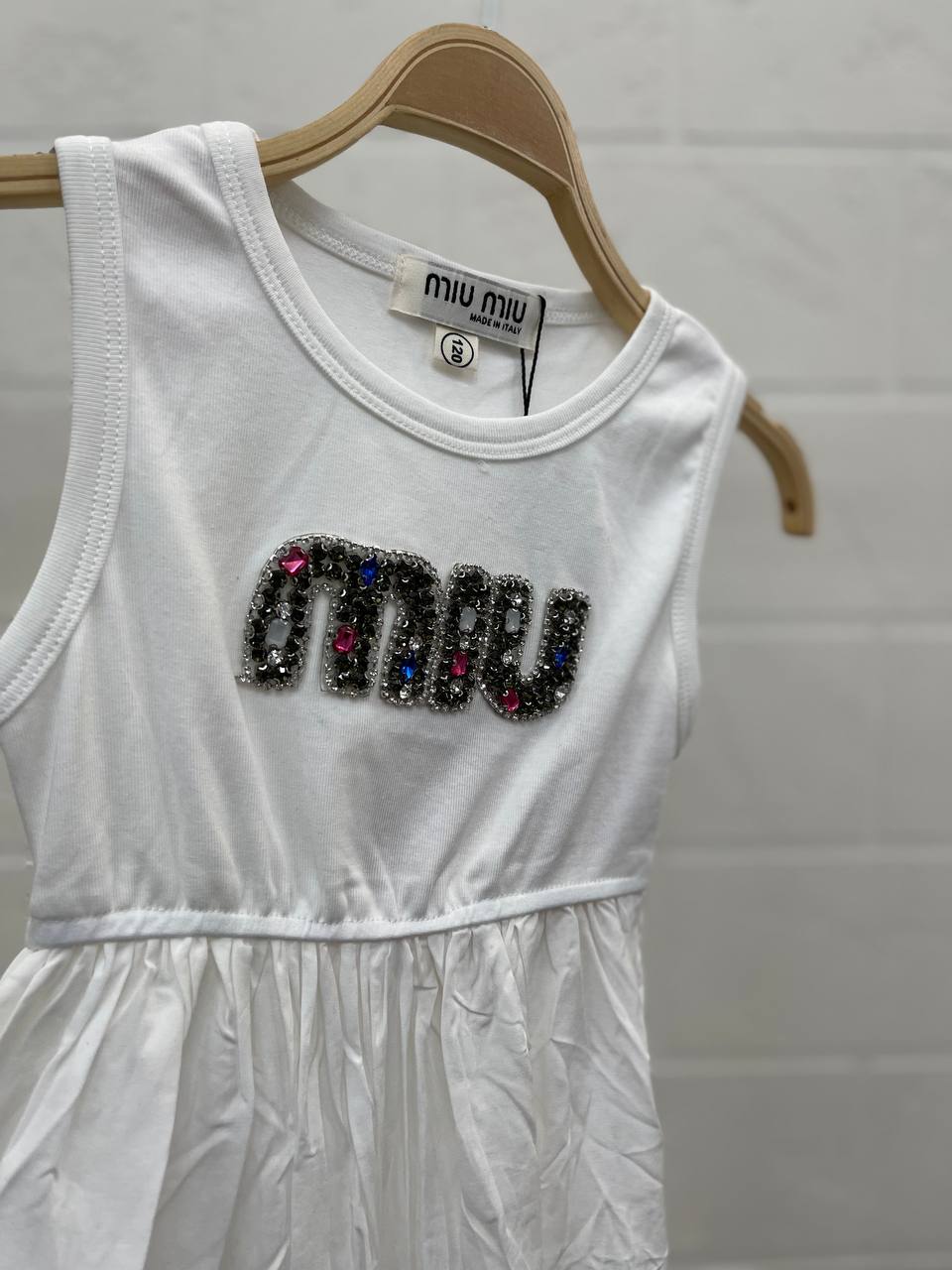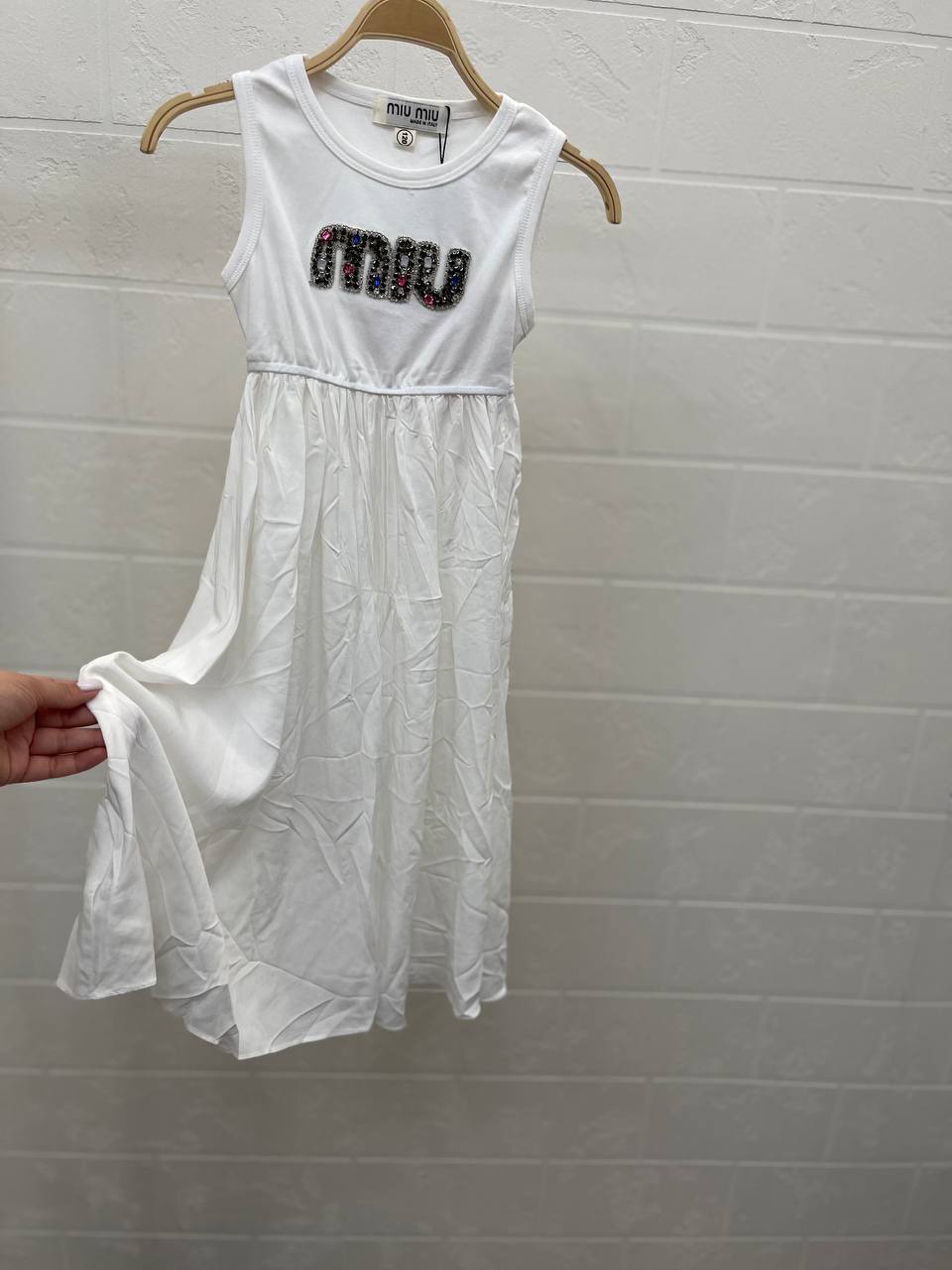 Платье Miu Miu LUX-106250 - это элегантное платье в повседневном стиле. Белый цвет, круглый вырез и акцент на талии делают платье женственным и стильным. Отлично подойдет для создания летних образов.