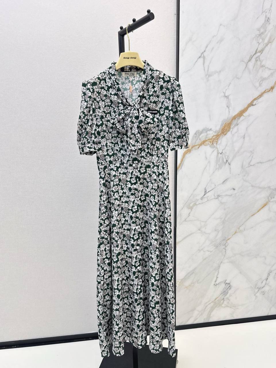 Платье Miu Miu LUX-118481 выполнено в романтичном стиле с цветочным принтом. Платье имеет глубокий V-образный вырез, короткие рукава и элегантную юбку. Этот наряд подойдет для различных мероприятий, от повседневных прогулок до вечерних выходов.