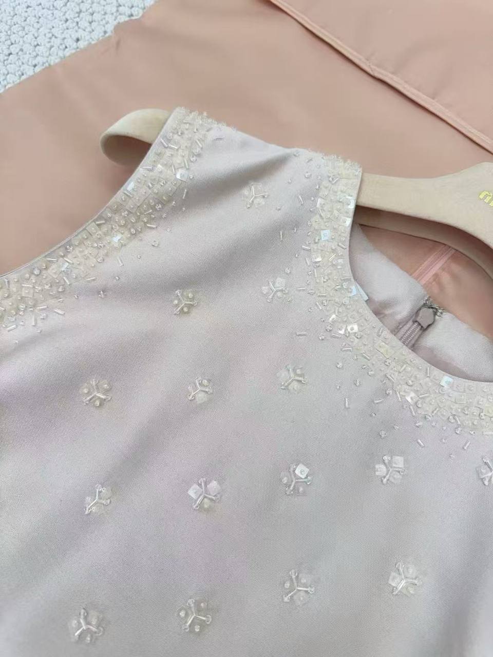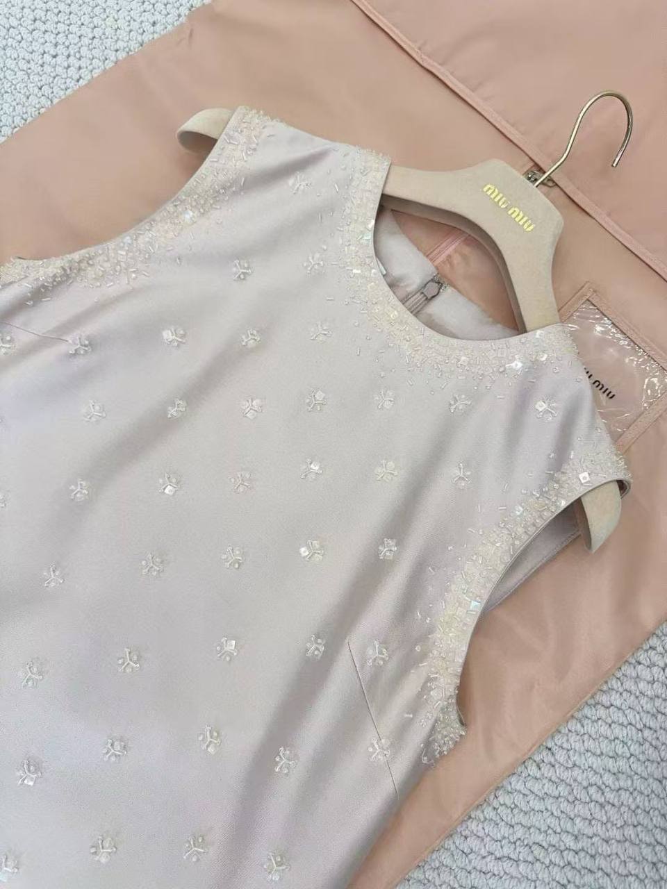 Платье Miu Miu LUX-131355 – изысканный вариант для особых случаев. Платье-трапеция выполнено в нежном оттенке и украшено сверкающими деталями, придающими образу неповторимый шарм. Идеальный выбор для создания элегантного и запоминающегося образа.