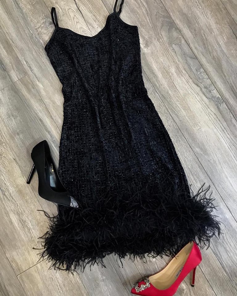 Платье Miu Miu ОДЖ-1430 – это изысканный выбор для вечерних мероприятий и особых случаев. Изящная модель на тонких бретелях, украшенная объемной текстурой по всей длине и эффектной бахромой из перьев по подолу, создает неповторимый образ. Черный цвет и минималистичный крой подчеркивают элегантность, делая это платье универсальным дополнением к гардеробу.