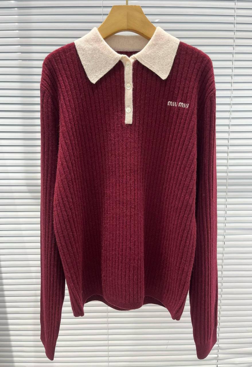 Поло Miu Miu LUX-114269 — это элегантный предмет гардероба от известного бренда. Представленная модель выполнена в бордовом цвете с контрастным белым воротником, что придает ей изысканный вид. Поло обладает универсальным дизайном, который подойдет для создания различных образов.