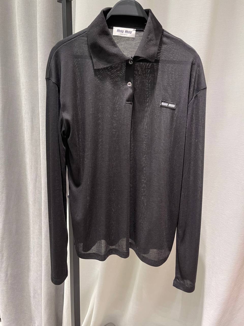 Поло Miu Miu LUX-118699 - это стильная вещь от известного бренда, выполненная в классическом стиле поло с длинными рукавами. Поло представлено в черном цвете, что делает его универсальным и подходящим для различных образов. Текстура ткани полупрозрачная, придающая изделию легкость и элегантность.