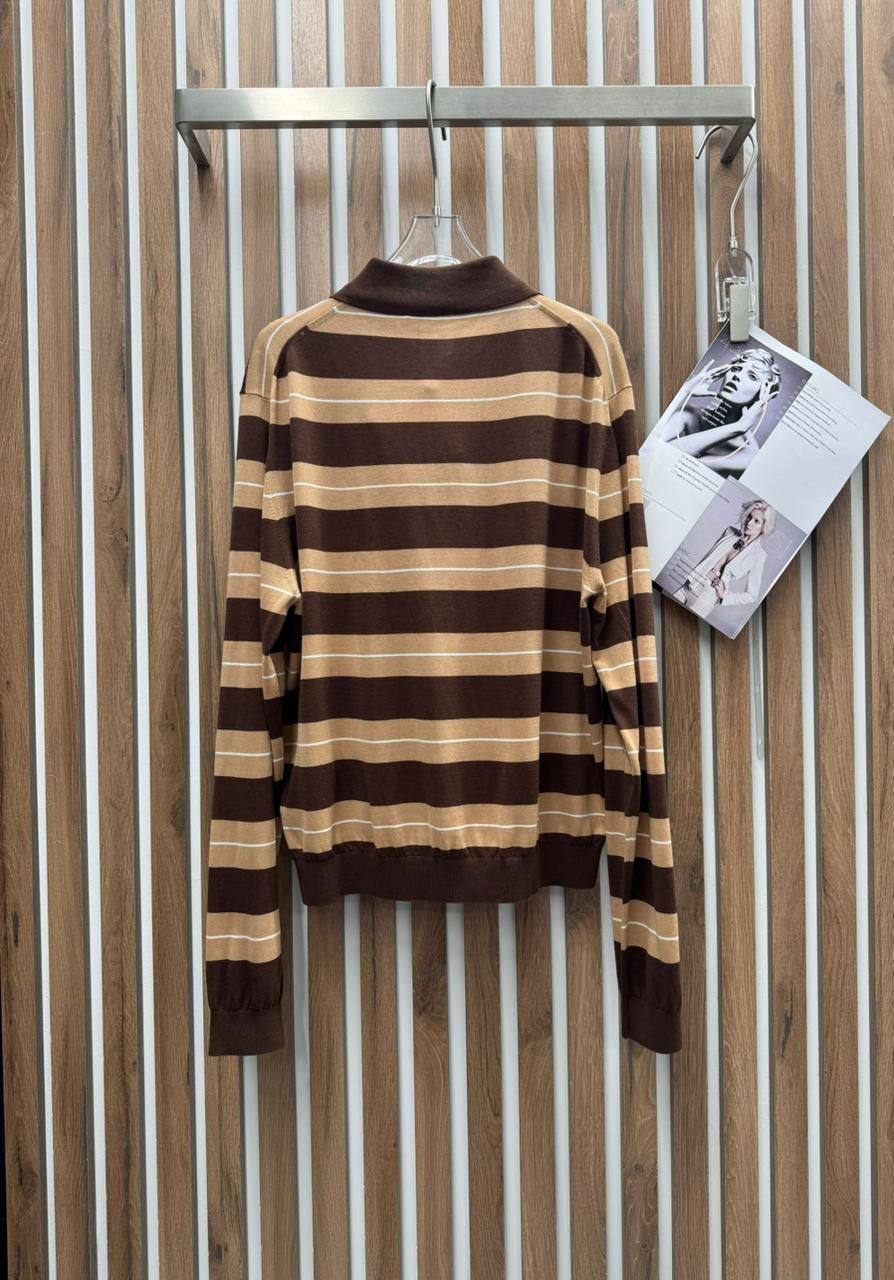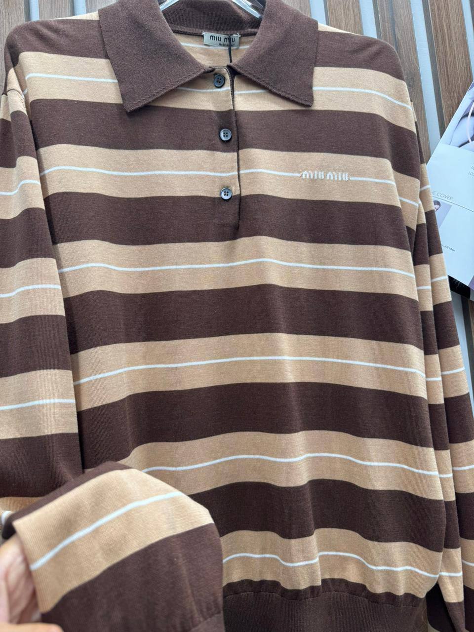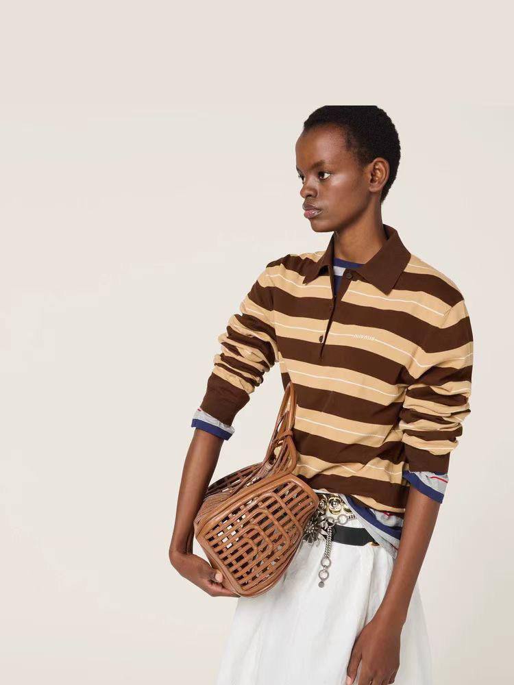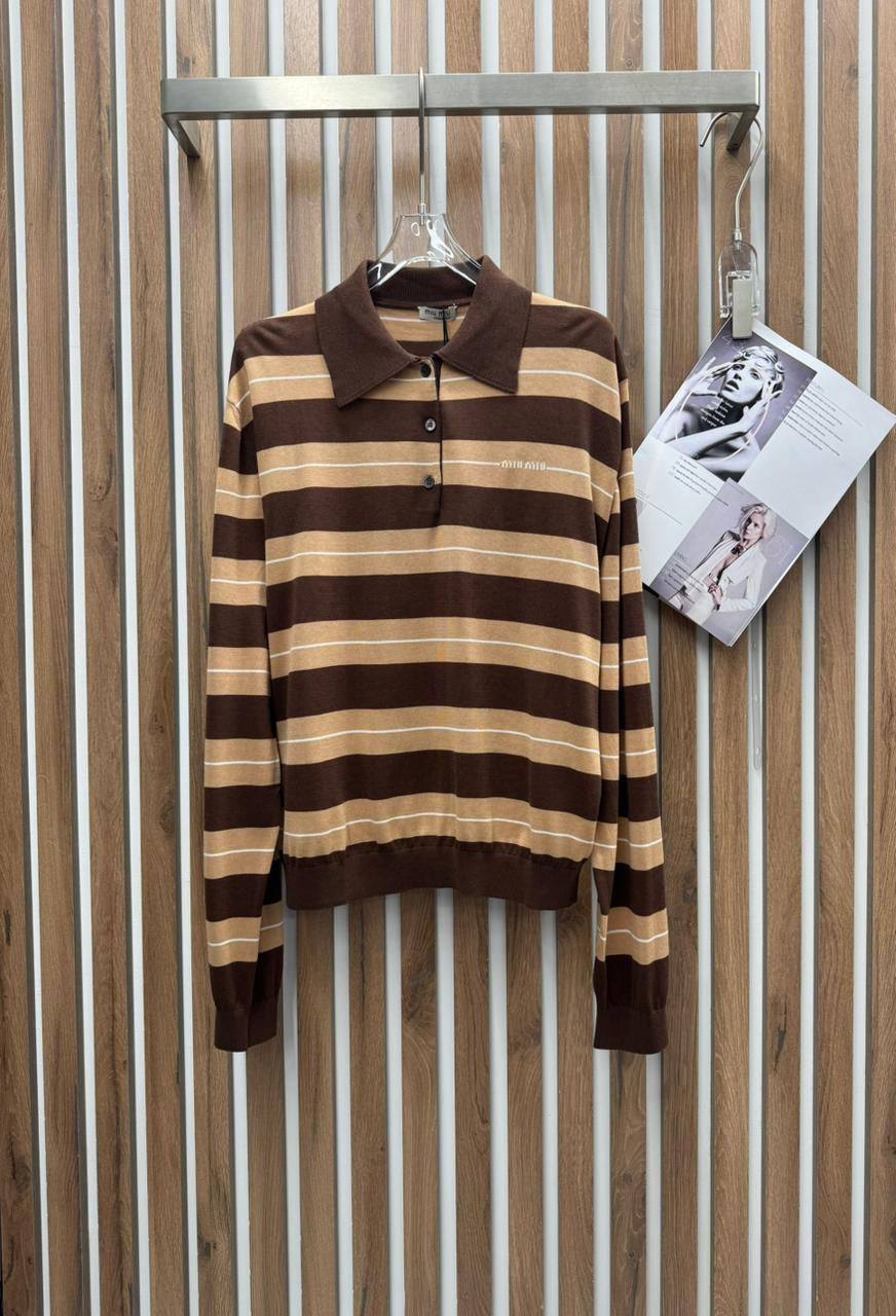 Поло Miu Miu - это сочетание классического стиля и современных тенденций. Модель выполнена в полоску, создавая интересный и запоминающийся образ. Идеальный выбор для повседневного гардероба.