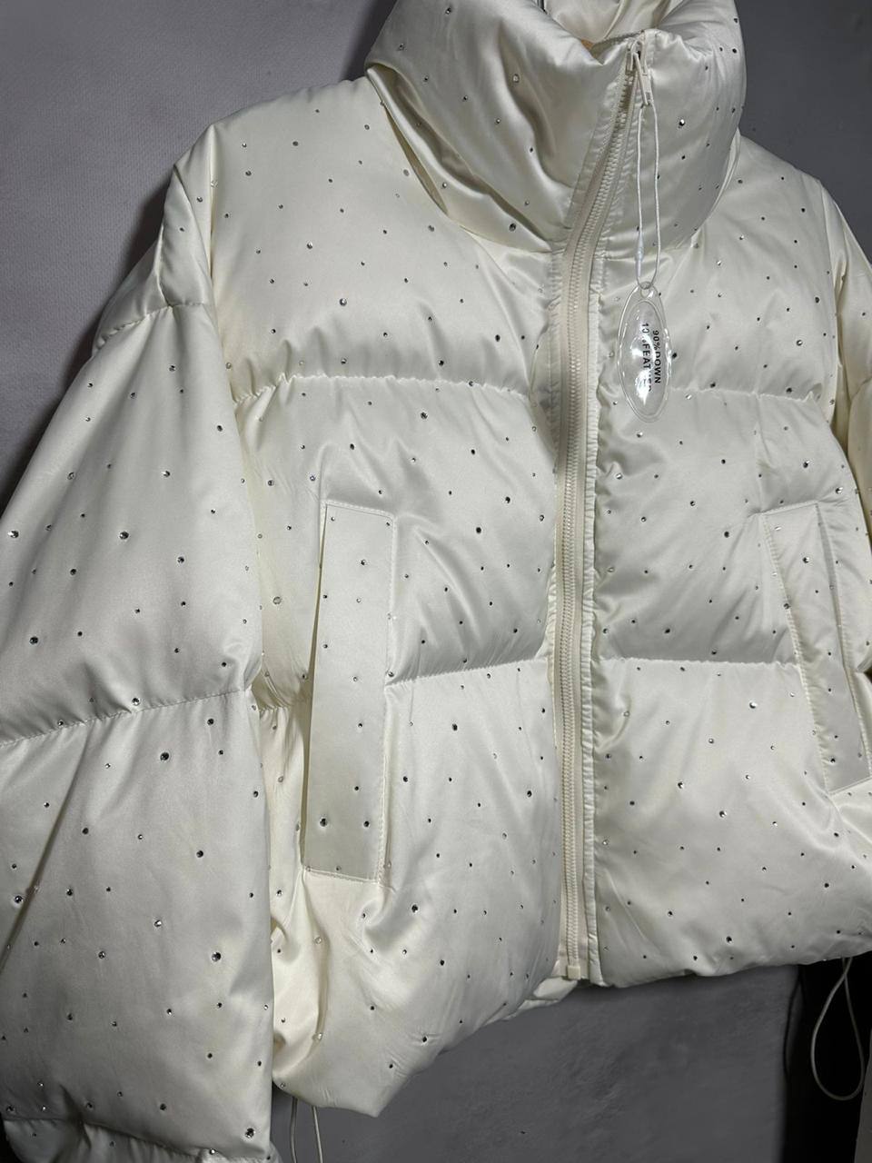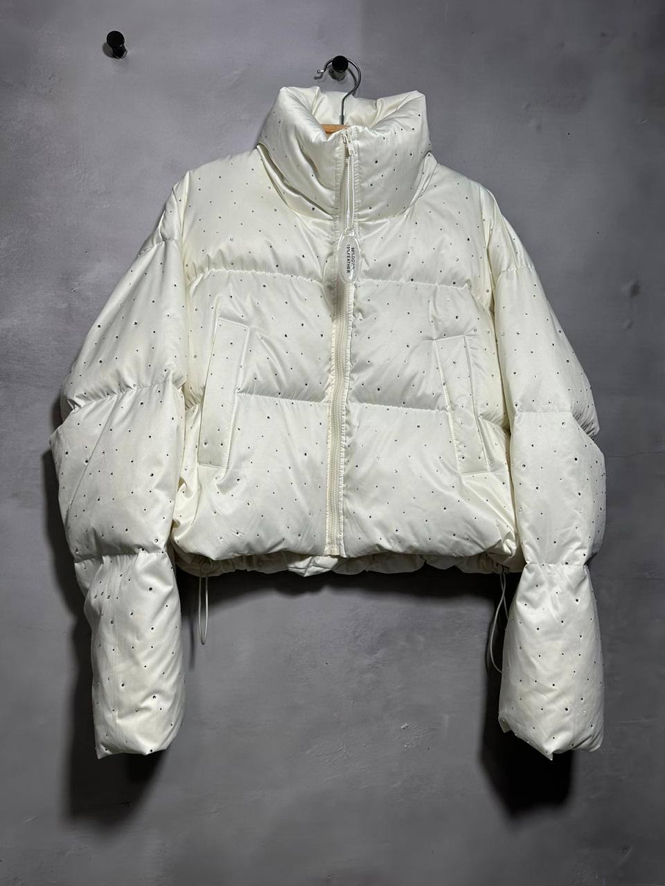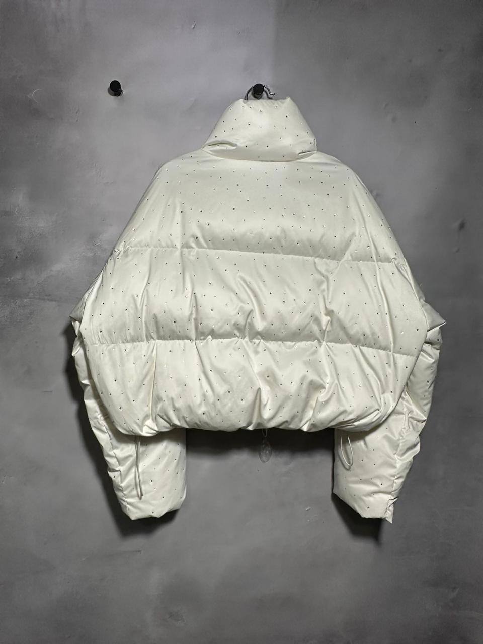 Пуховик Miu Miu LUX-100631 — это стильная и теплая верхняя одежда для холодных сезонов. Пуховик выполнен в кремовом цвете, с мелким декором по всей поверхности. Он имеет свободный крой и высокий воротник, обеспечивая комфорт и защиту от холода.