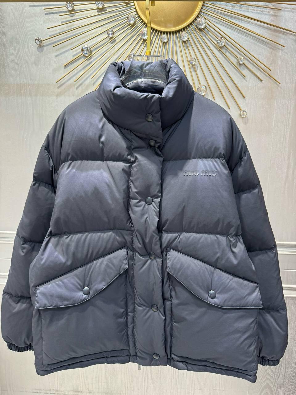 Пуховик Miu Miu LUX-112500 — это стильная и теплая верхняя одежда для холодного времени года. Пуховик выполнен в классическом стиле, имеет прямой крой и спокойный серый цвет. Текстура изделия матовая, визуально приятная и комфортная в носке.