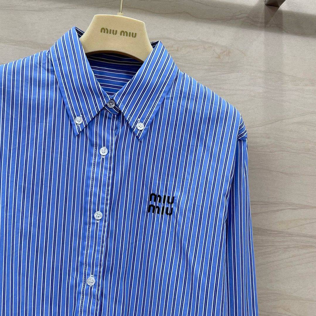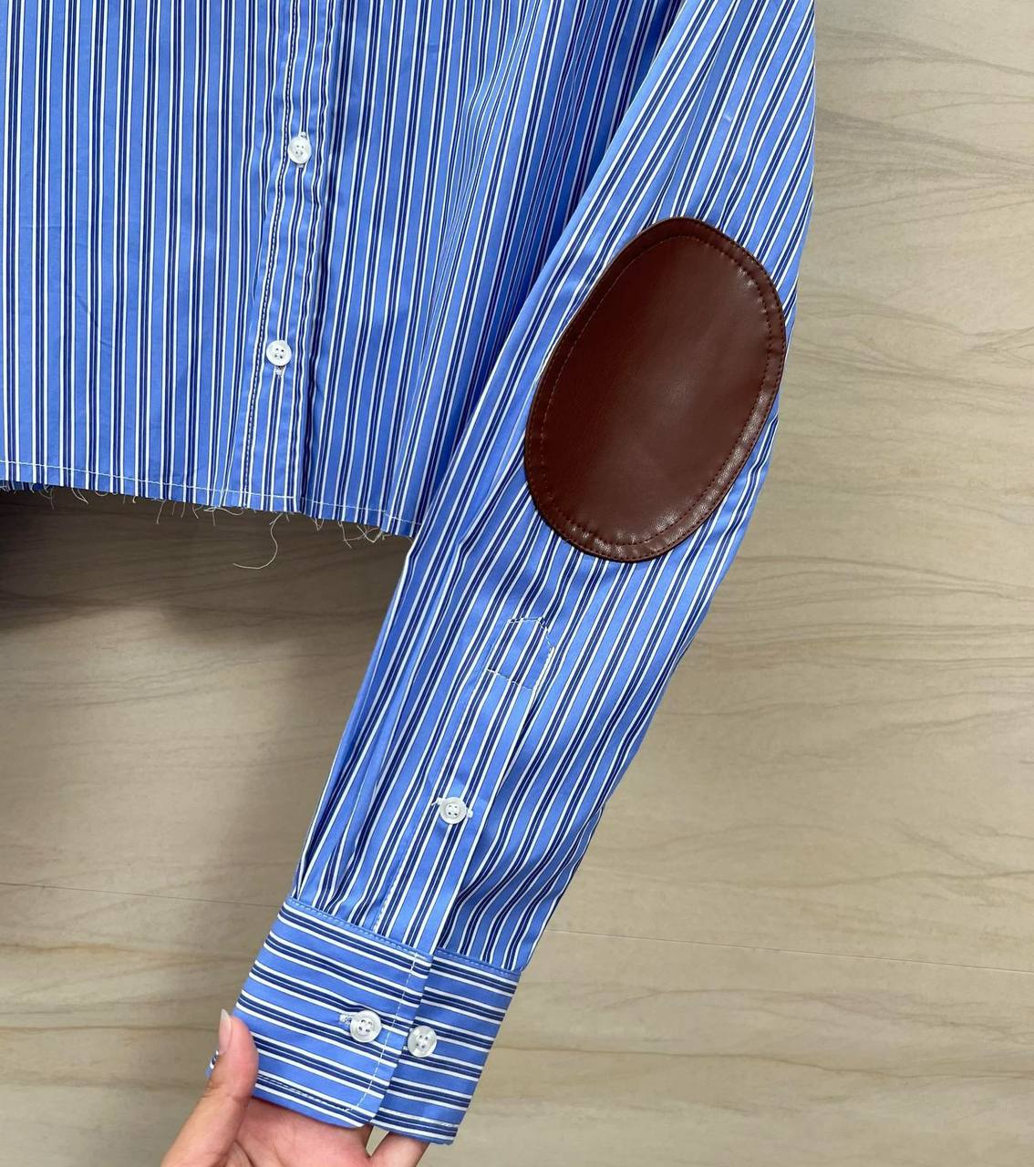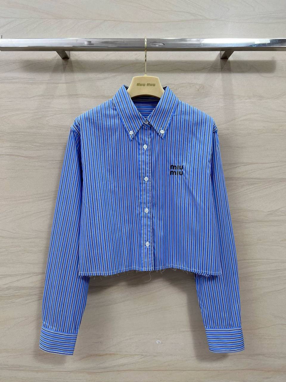 Рубашка Miu Miu LUX-114314 - это стильная рубашка в полоску, выполненная в ярком синем цвете. Её современный дизайн подчеркивает укороченный крой, что делает ее отличным вариантом для создания модных образов. Рубашка подойдёт для повседневной носки, а также для особых случаев.