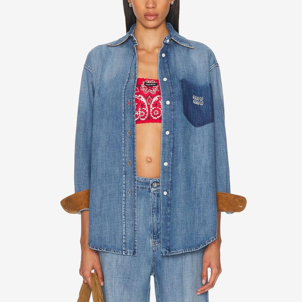 Рубашка Miu Miu LUX-122433 – это стильная джинсовая рубашка, сочетающая в себе классический деним и современные акценты. Она станет отличным дополнением к повседневному гардеробу.