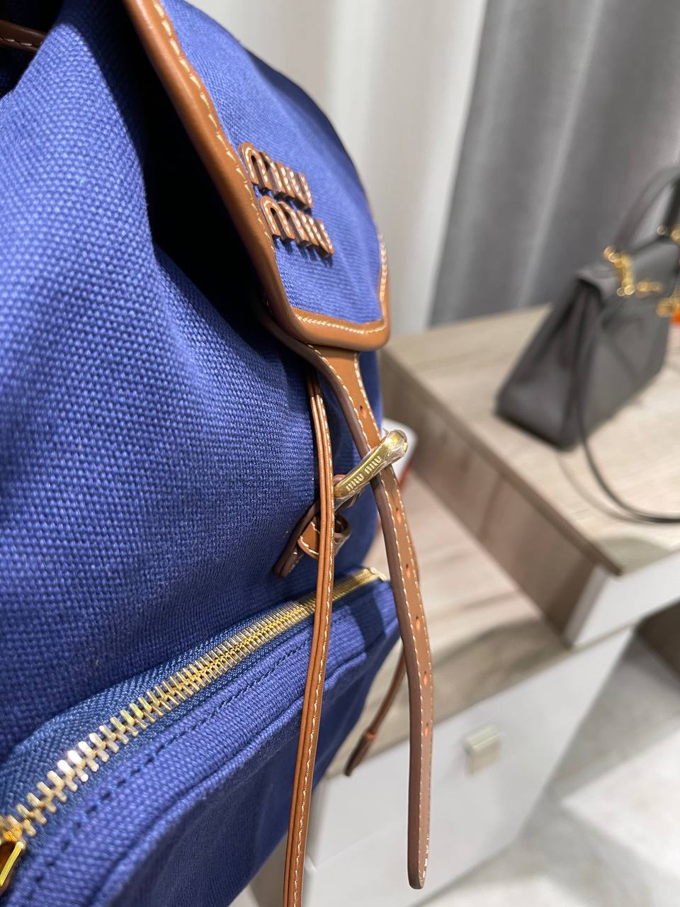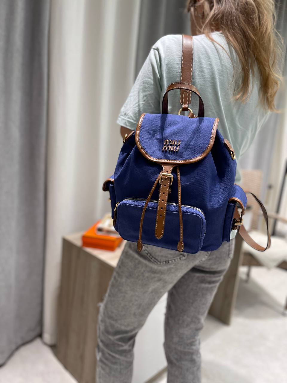 Рюкзак Miu Miu LUX-118163 — это стильный аксессуар, выполненный в классическом стиле. Рюкзак насыщенного синего цвета с контрастными коричневыми кожаными элементами. Идеально подходит для повседневного использования, сочетая в себе функциональность и элегантность.