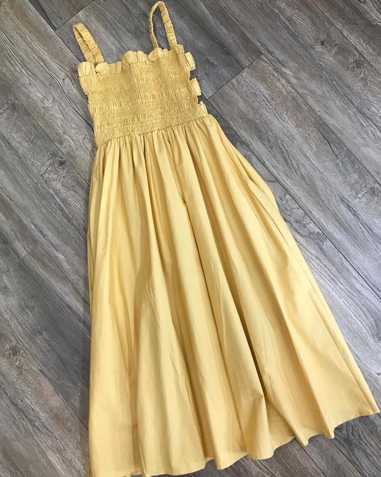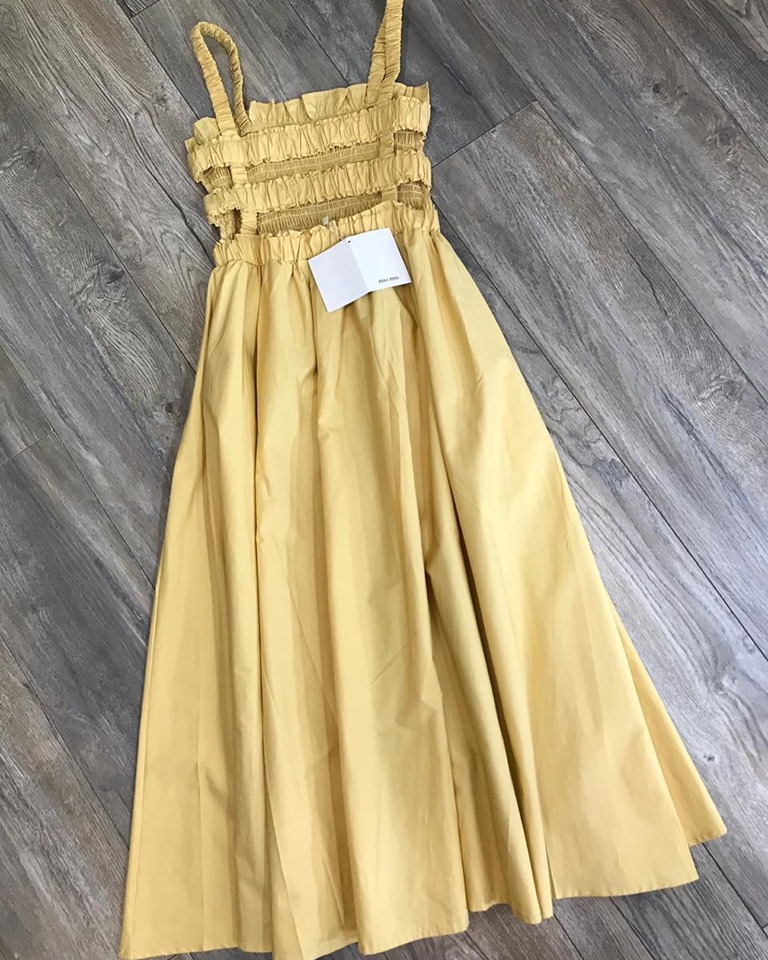 Этот женский сарафан Miu Miu LUX-16015 выполнен в нежном желтом оттенке, идеально подходящем для летнего гардероба. Модель отличается легким силуэтом и удобным кроем. Акцентная драпировка на лифе и открытые бока придают ему особый шарм и элегантность. Он прекрасно подойдет для создания расслабленных, но стильных образов.