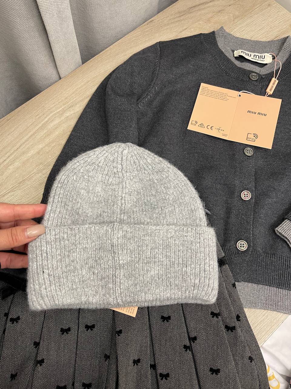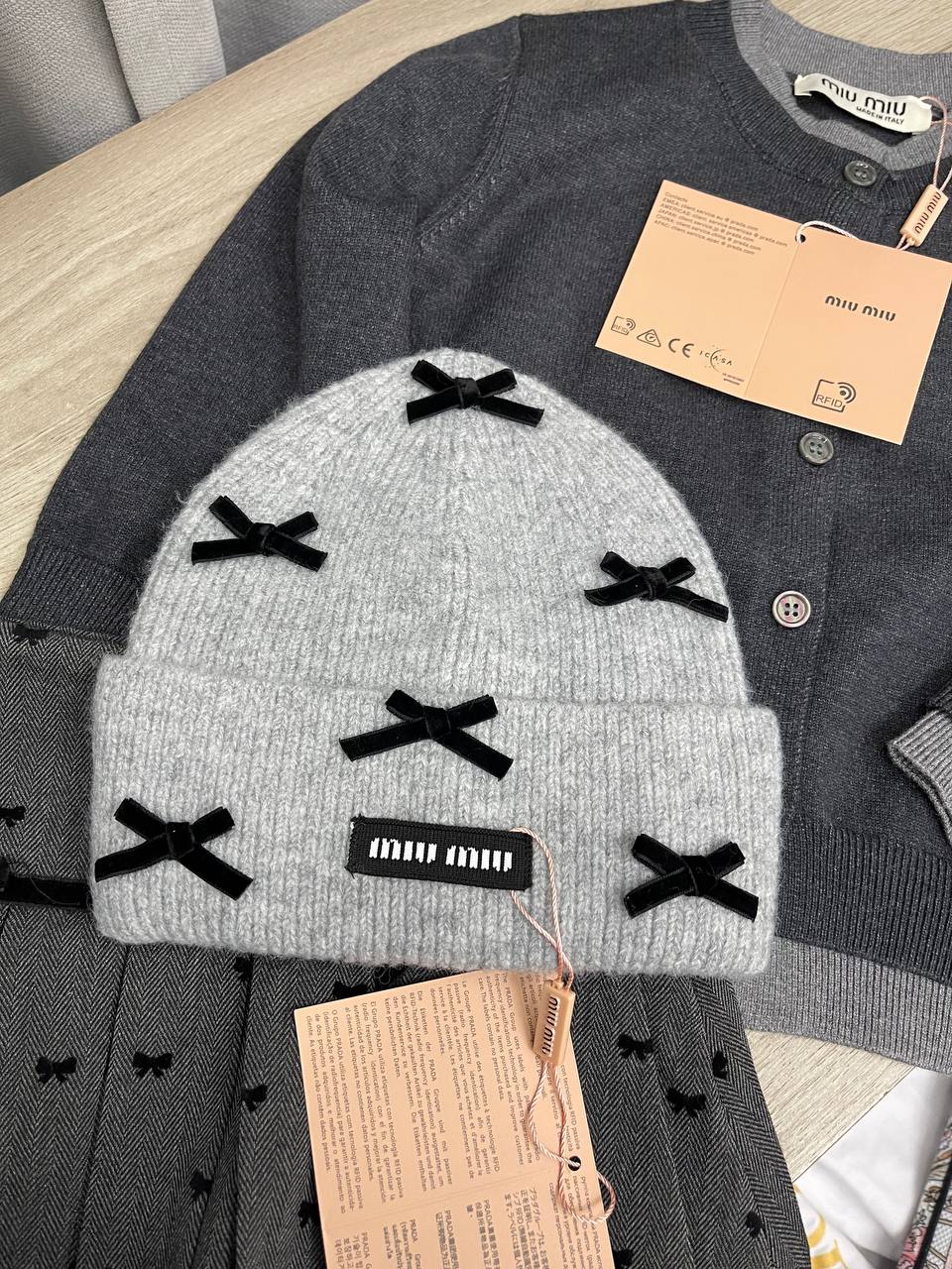 Шапка Miu Miu LUX-112966 — это стильный аксессуар от известного бренда, выполненный в современном стиле. Шапка светло-серого цвета, украшена декоративными бантами и брендированной нашивкой. Она представляет собой идеальный выбор для создания элегантных и запоминающихся образов в холодное время года.