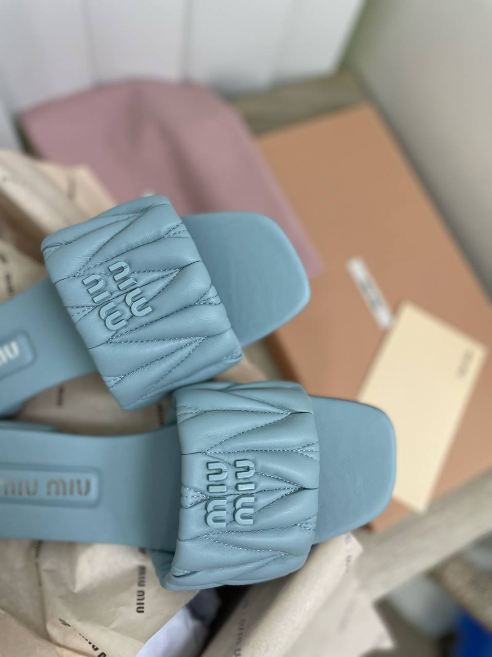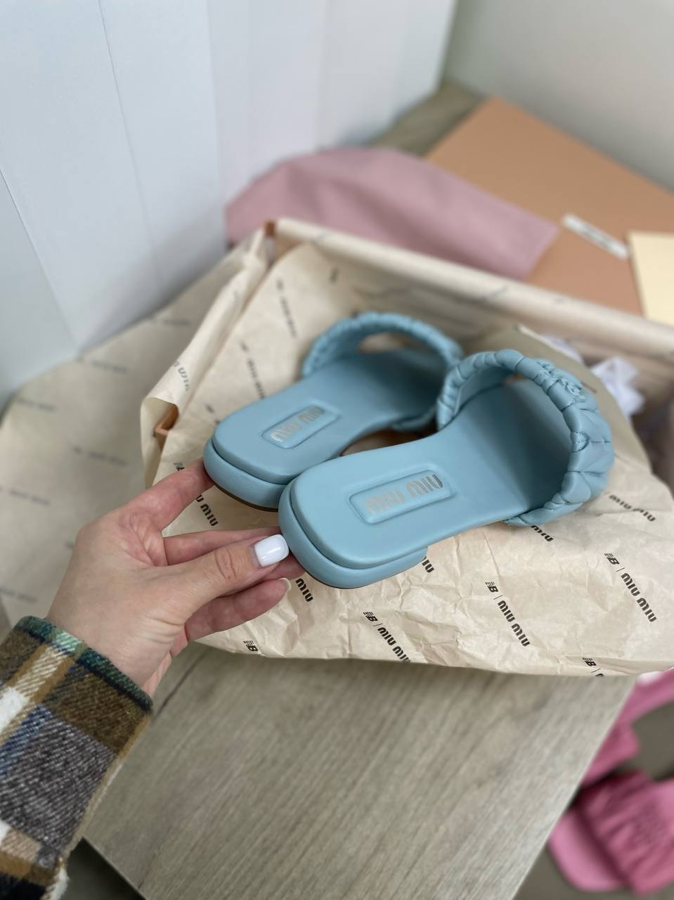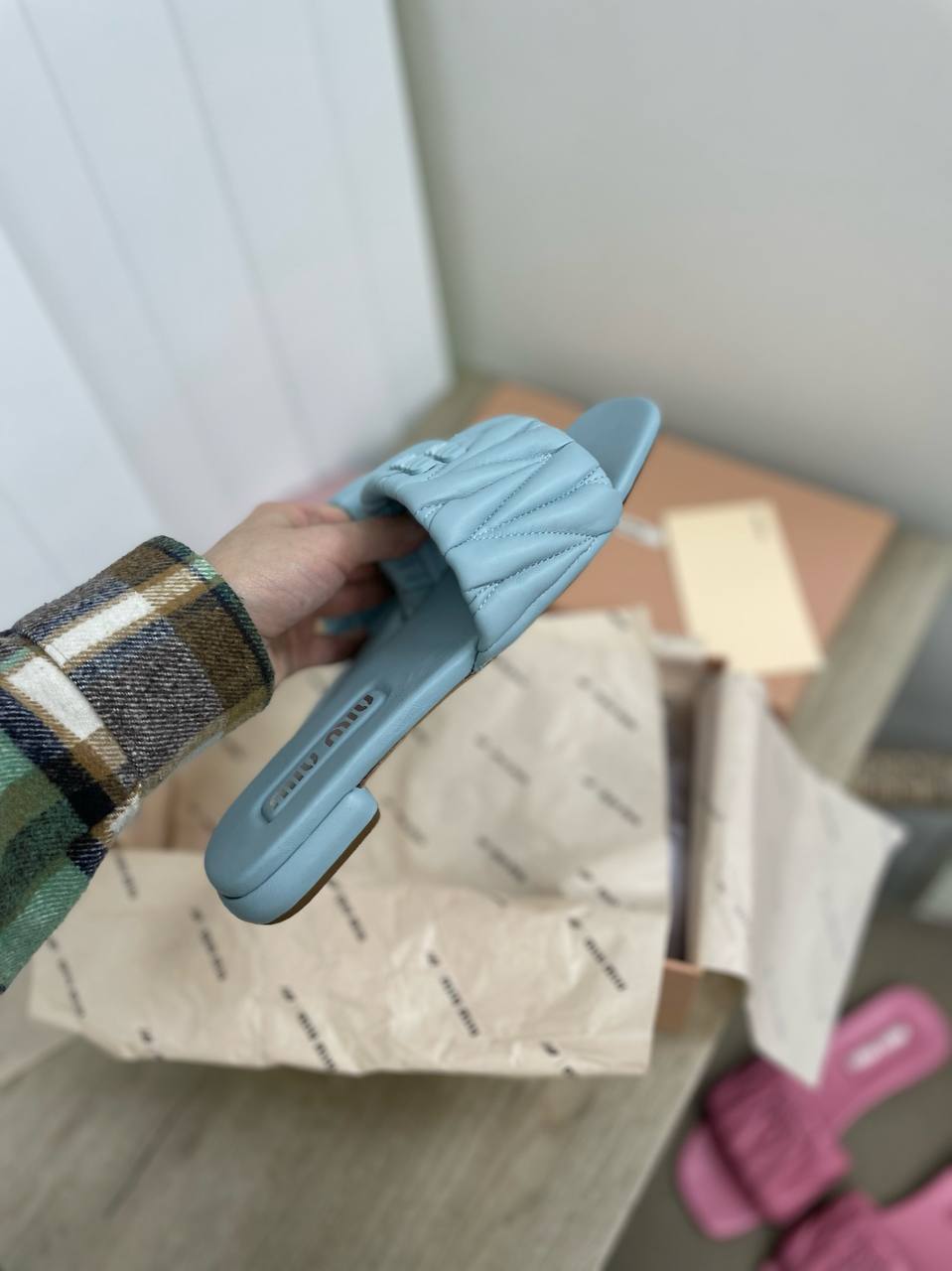 Шлепанцы Miu Miu LUX-86921 - это воплощение элегантности и комфорта в мире летней обуви. Шлепанцы небесно-голубого цвета, стеганые спереди, подчеркивают изысканный вкус их обладательницы. Идеальный вариант для создания неповторимого летнего образа.