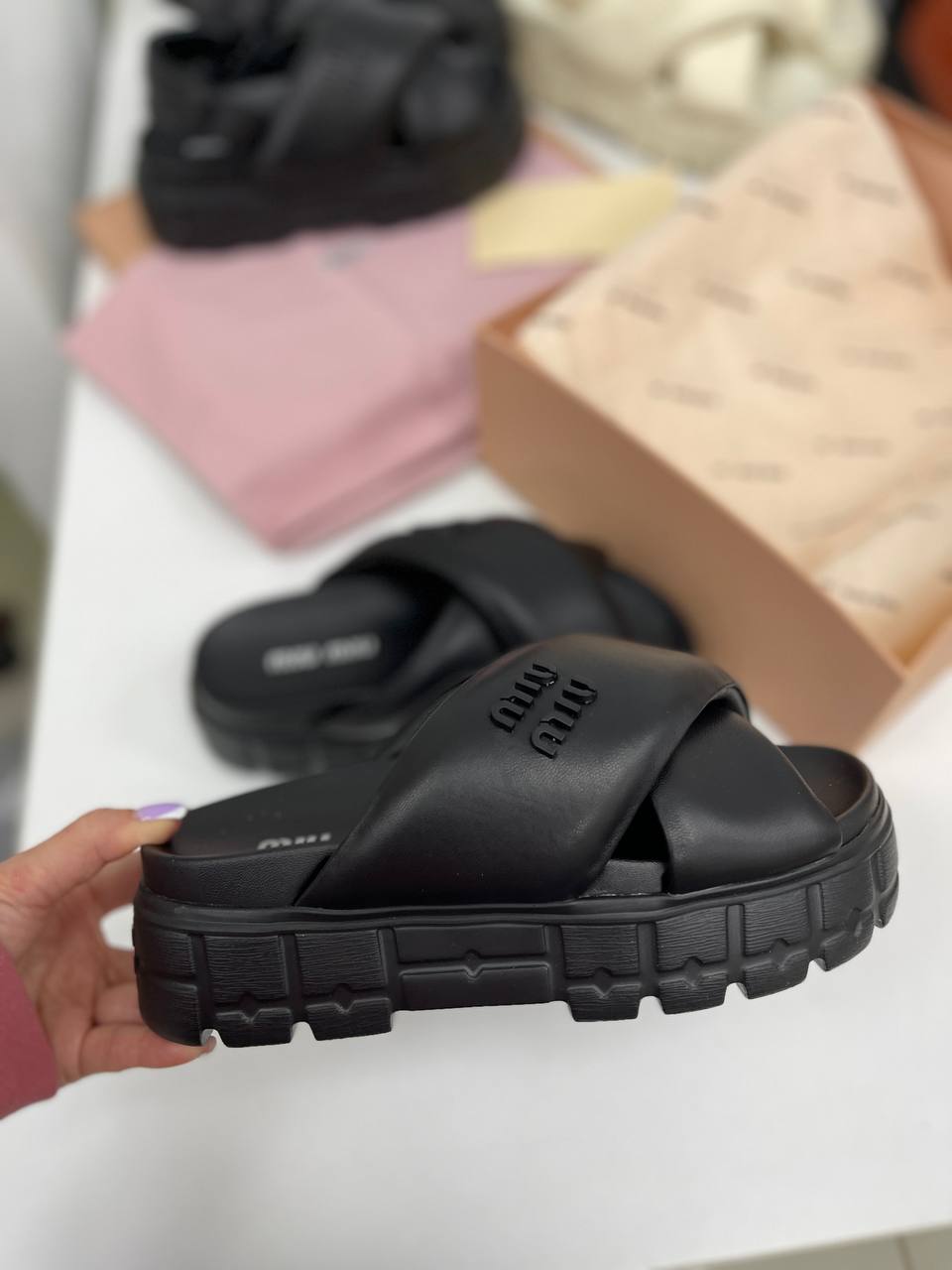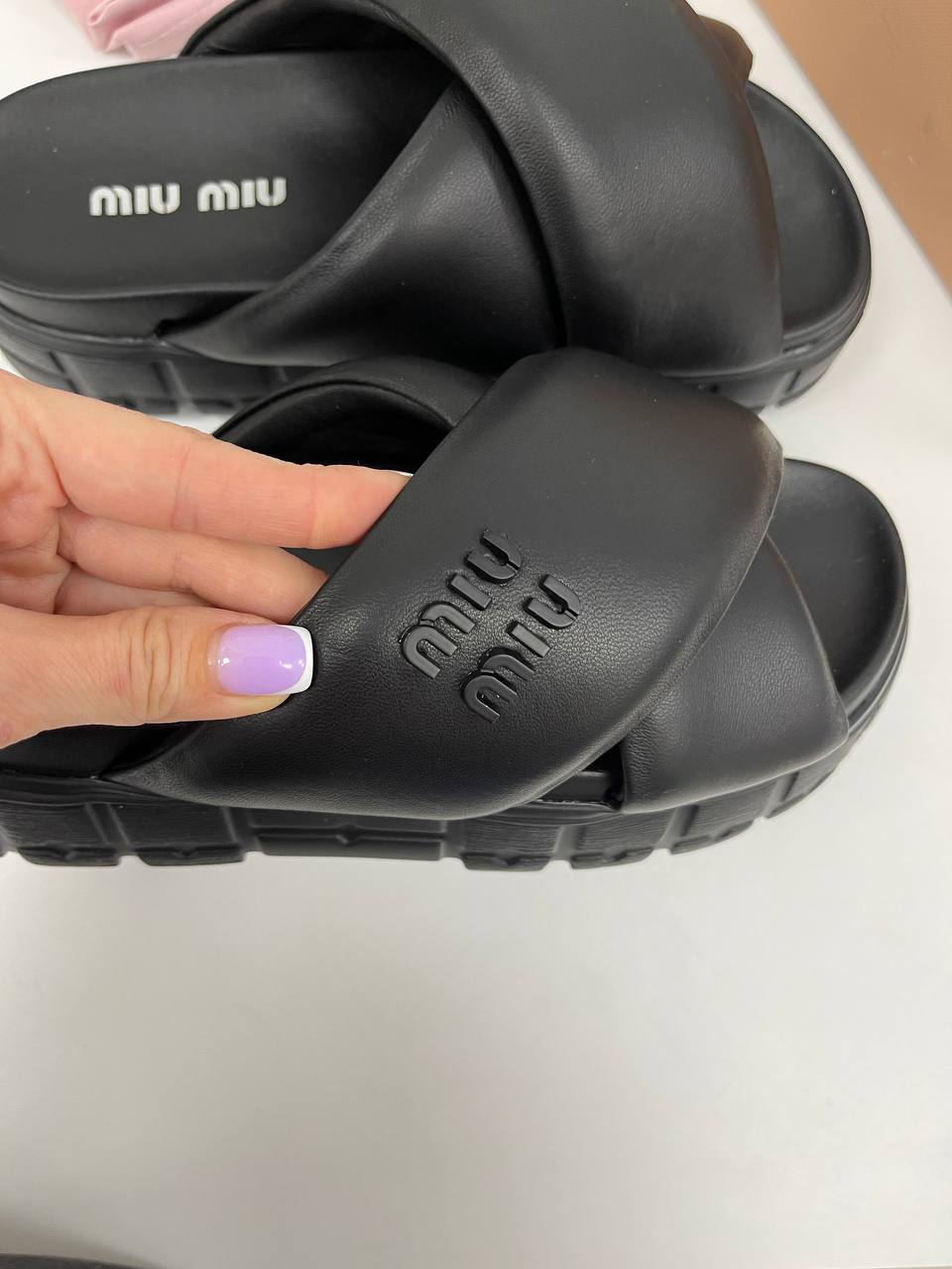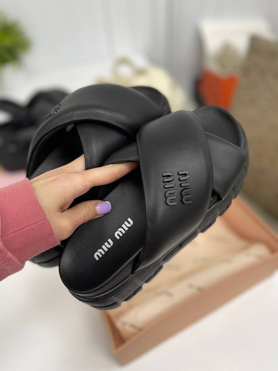 Шлепанцы Miu Miu LUX-88892 — это стильная обувь для повседневной носки, выполненная в минималистичном дизайне. Черный цвет и мягкая текстура создают элегантный и современный образ. Шлепанцы идеально подойдут для создания расслабленных летних образов.
