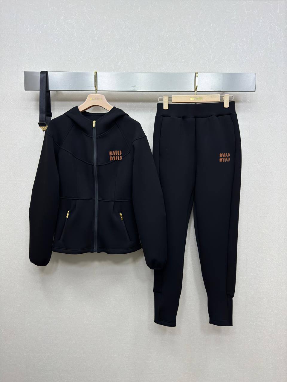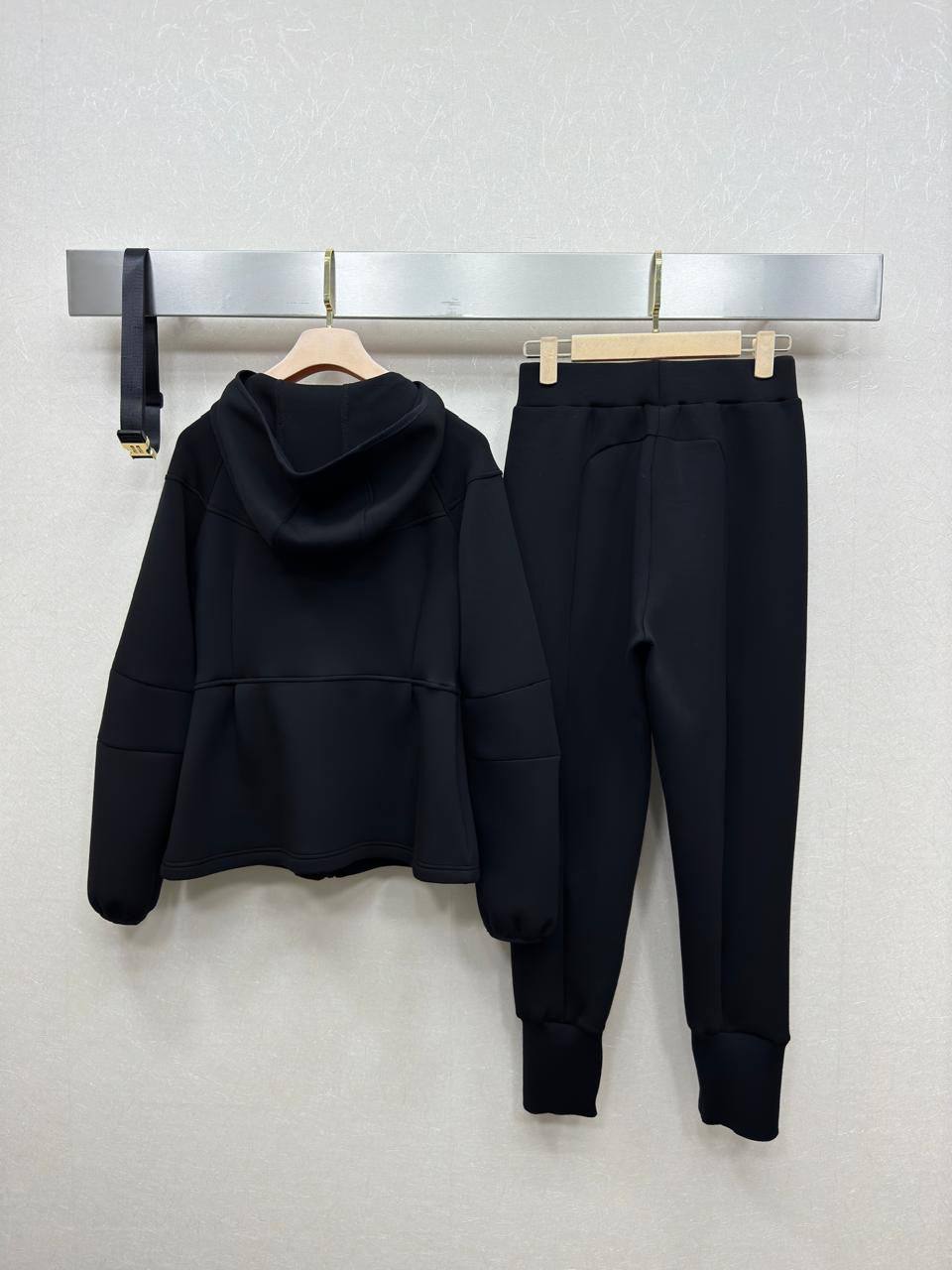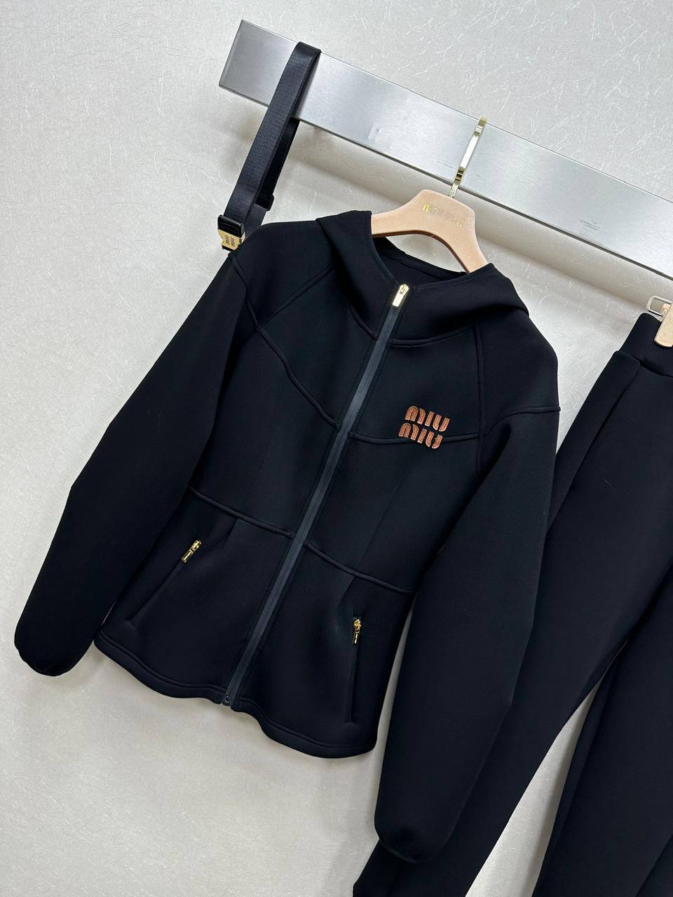 Костюм спортивный Miu Miu LUX-116272 — это стильный спортивный костюм черного цвета от Miu Miu. Комплект включает в себя кофту на молнии и брюки. Текстура костюма однородная, что придает ему элегантный вид. Подходит для повседневной носки и занятий спортом.