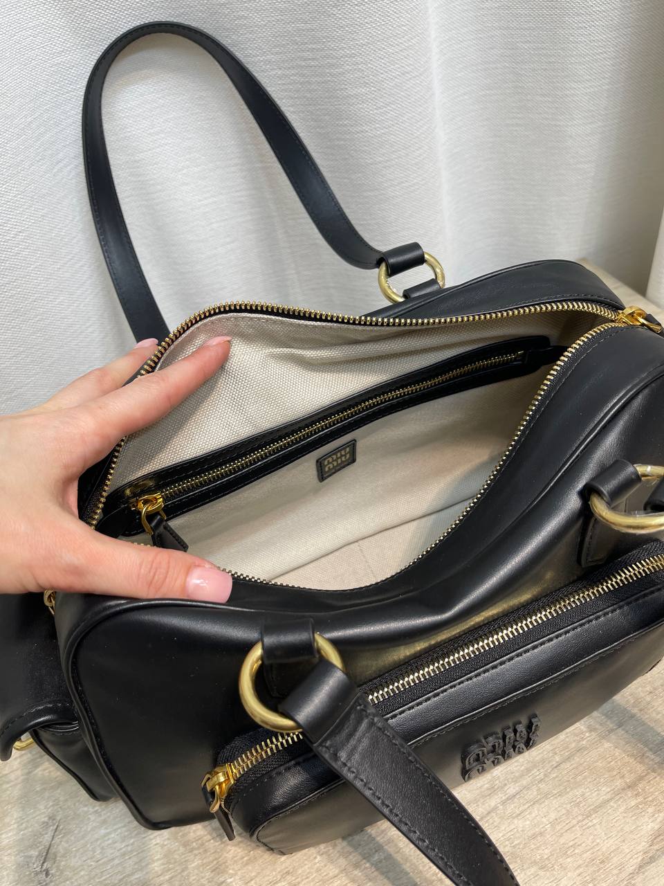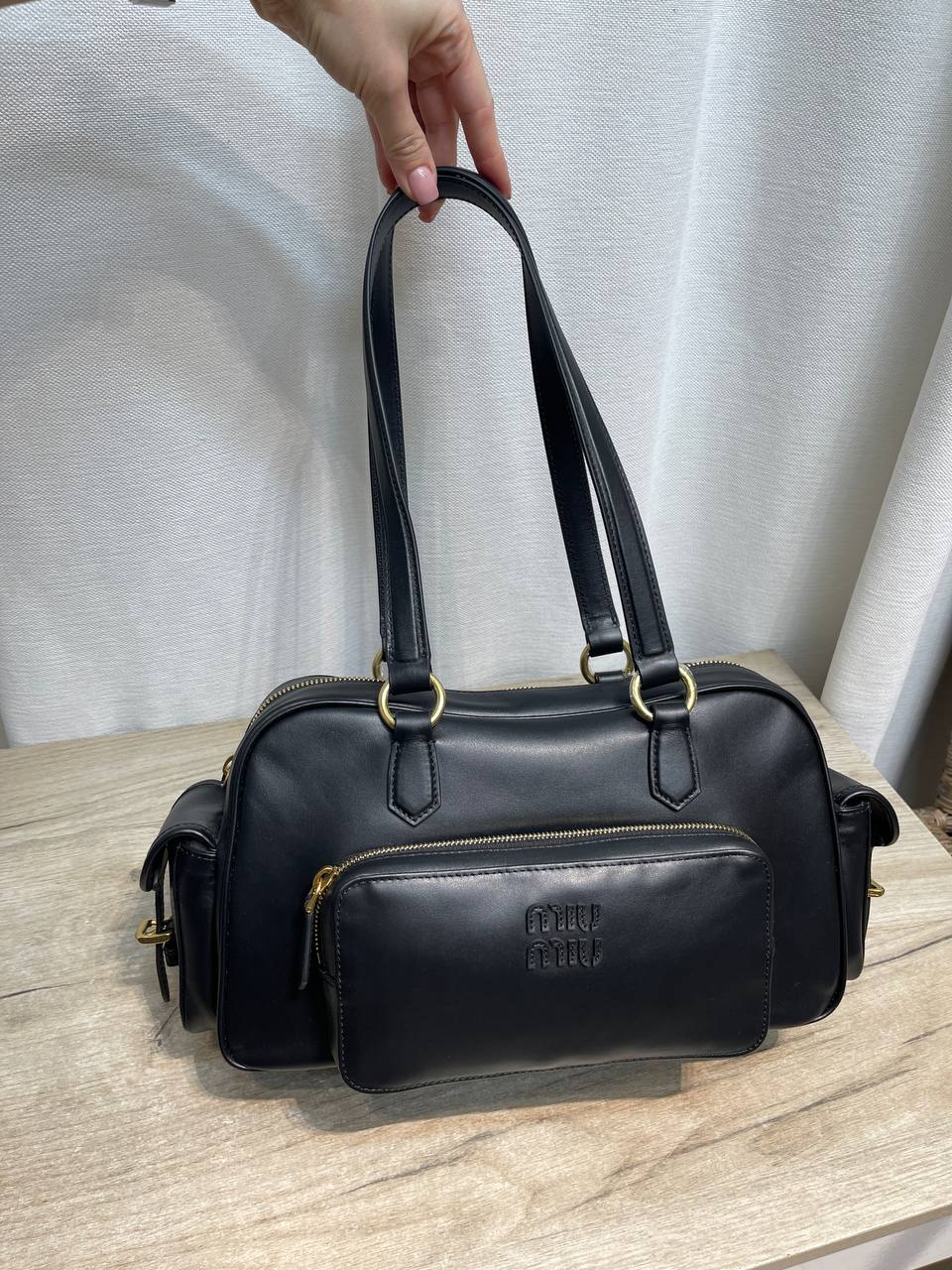 Стильная женская сумка от Miu Miu – это сочетание элегантности и практичности. Сумка выполнена в классическом черном цвете, что делает ее универсальным аксессуаром для любого образа.