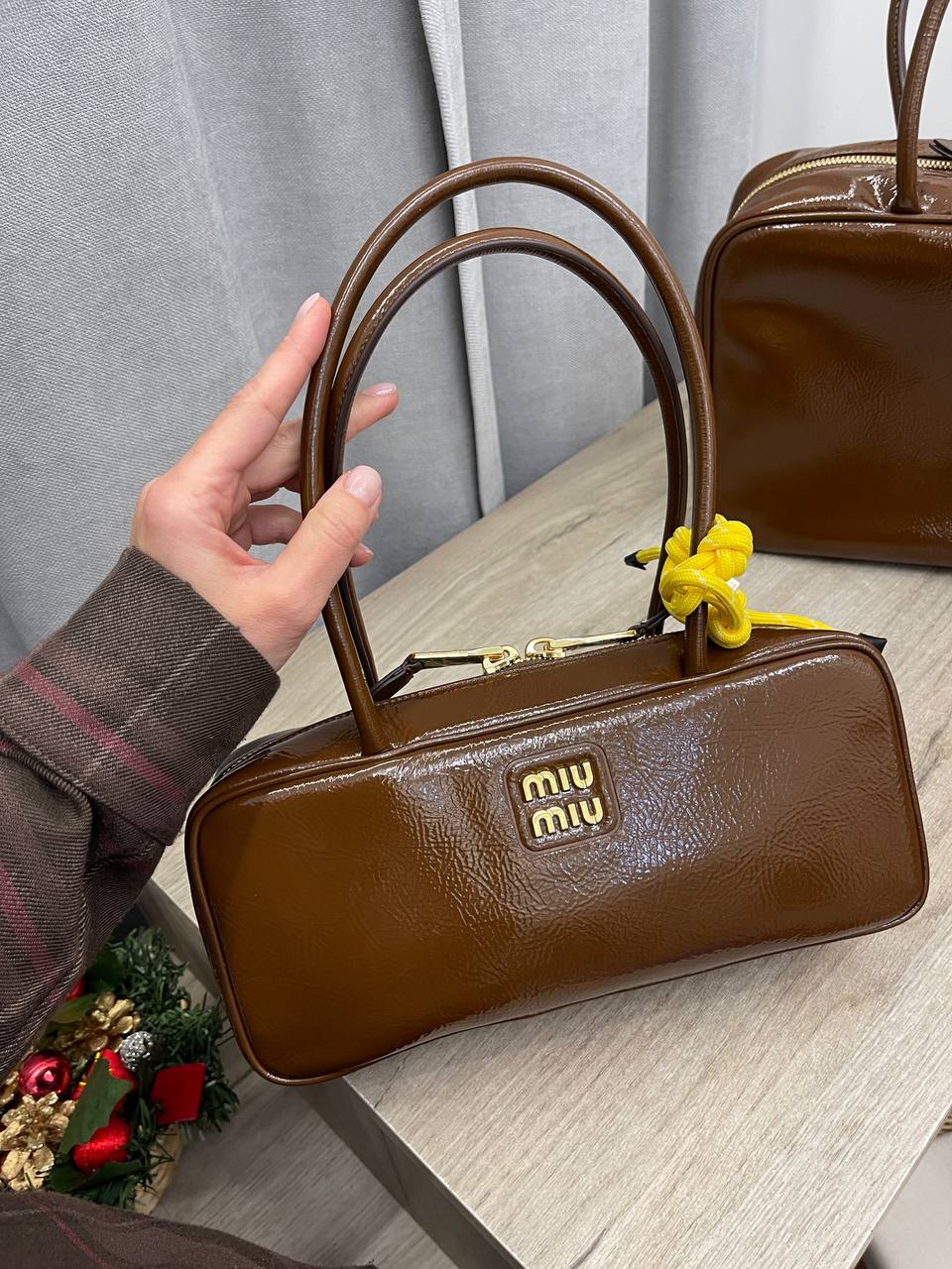 Сумка женская Miu Miu LUX-113259 — это элегантный аксессуар в классическом стиле. Сумка выполнена в глянцевом коричневом цвете, прямоугольной формы, с короткими ручками. Отлично подойдет для повседневного использования и особых случаев.