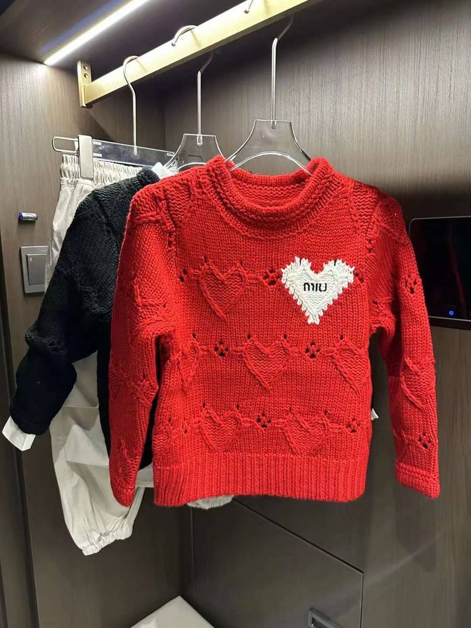 Свитер Miu Miu LUX-111495 – это стильный элемент гардероба от известного бренда. Красный свитер с декором в виде сердечек, а также белой нашивкой в форме сердца с логотипом бренда, придаёт изделию игривый и в то же время элегантный вид. Он идеально подойдёт для создания повседневных, но запоминающихся образов.