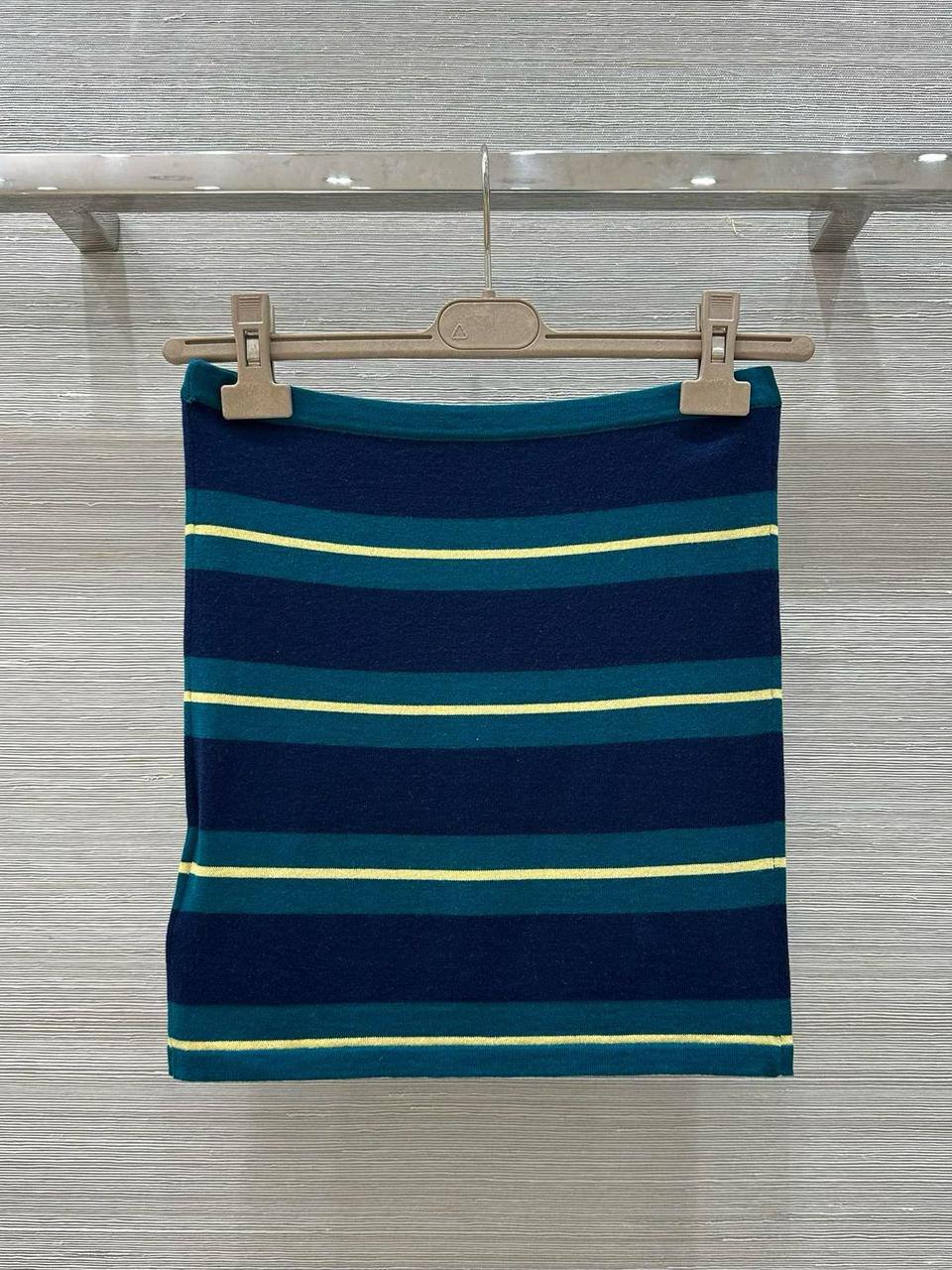 Топ Miu Miu LUX-118546 представляет собой стильный предмет гардероба в современном стиле. Топ выполнен в полоску, сочетающей темно-синий, бирюзовый и желтый цвета. Идеален для создания ярких и запоминающихся образов.