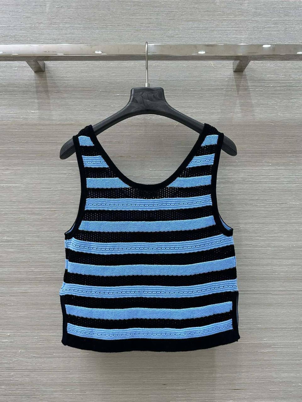 Топ Miu Miu LUX-119810 - это стильный топ в полоску, выполненный в сочетании черного и голубого цветов. Его лаконичный дизайн делает его идеальным выбором для создания различных образов, от повседневных до более формальных. Топ отлично подойдет для жаркой погоды.
