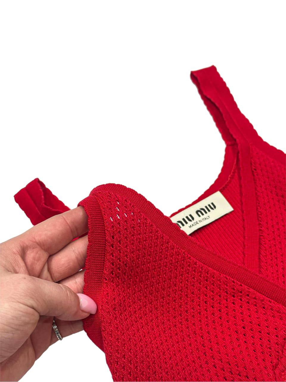 Топ Miu Miu – это стильный и элегантный выбор для создания яркого образа. Дизайн топа подчеркивает женственность и утонченность.