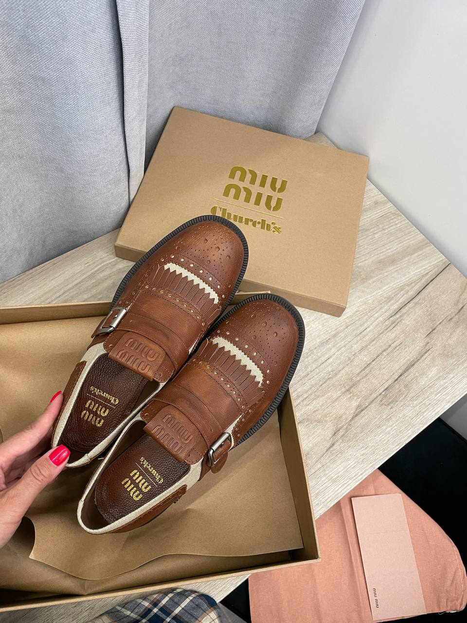 Туфли Miu Miu LUX-110474 представляют собой стильную модель с акцентом на деталях. Коричневые туфли украшены перфорацией и декоративными элементами, что придает им винтажный вид. Предназначены для создания элегантных образов в повседневной жизни.
