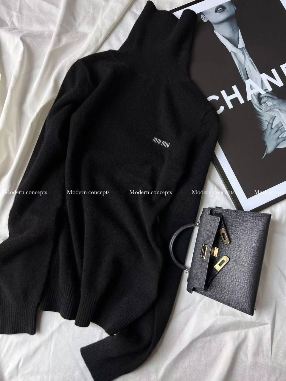 Водолазка Miu Miu LUX-98448 — это элегантный предмет гардероба, который сочетает в себе стиль и комфорт. Водолазка выполнена в классическом черном цвете, с логотипом бренда на груди. Она идеально подходит для создания различных образов, от повседневных до более формальных.