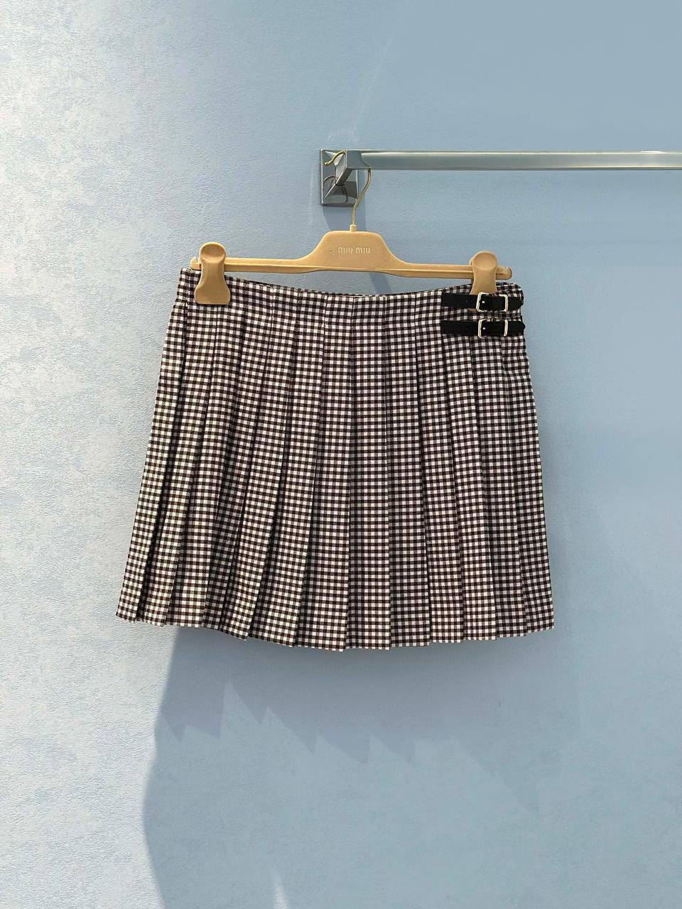 Юбка Miu Miu LUX-112640 представляет собой стильную мини-юбку в клетку. Её дизайн сочетает в себе классический крой с современными деталями. Юбка выполнена в черно-белой гамме, что делает ее универсальной для различных образов.