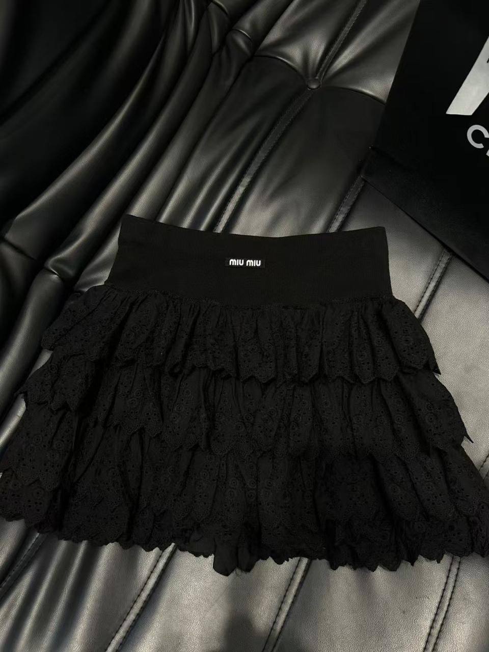 Юбка Miu Miu LUX-116616 – это изысканный предмет гардероба, сочетающий в себе элегантность и современный стиль. Юбка выполнена в черном цвете с кружевной текстурой и многослойным дизайном, что придает ей романтичный и женственный вид. Идеальна для создания как повседневных, так и вечерних образов.
