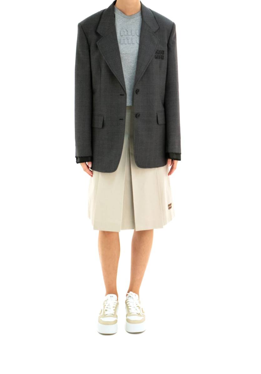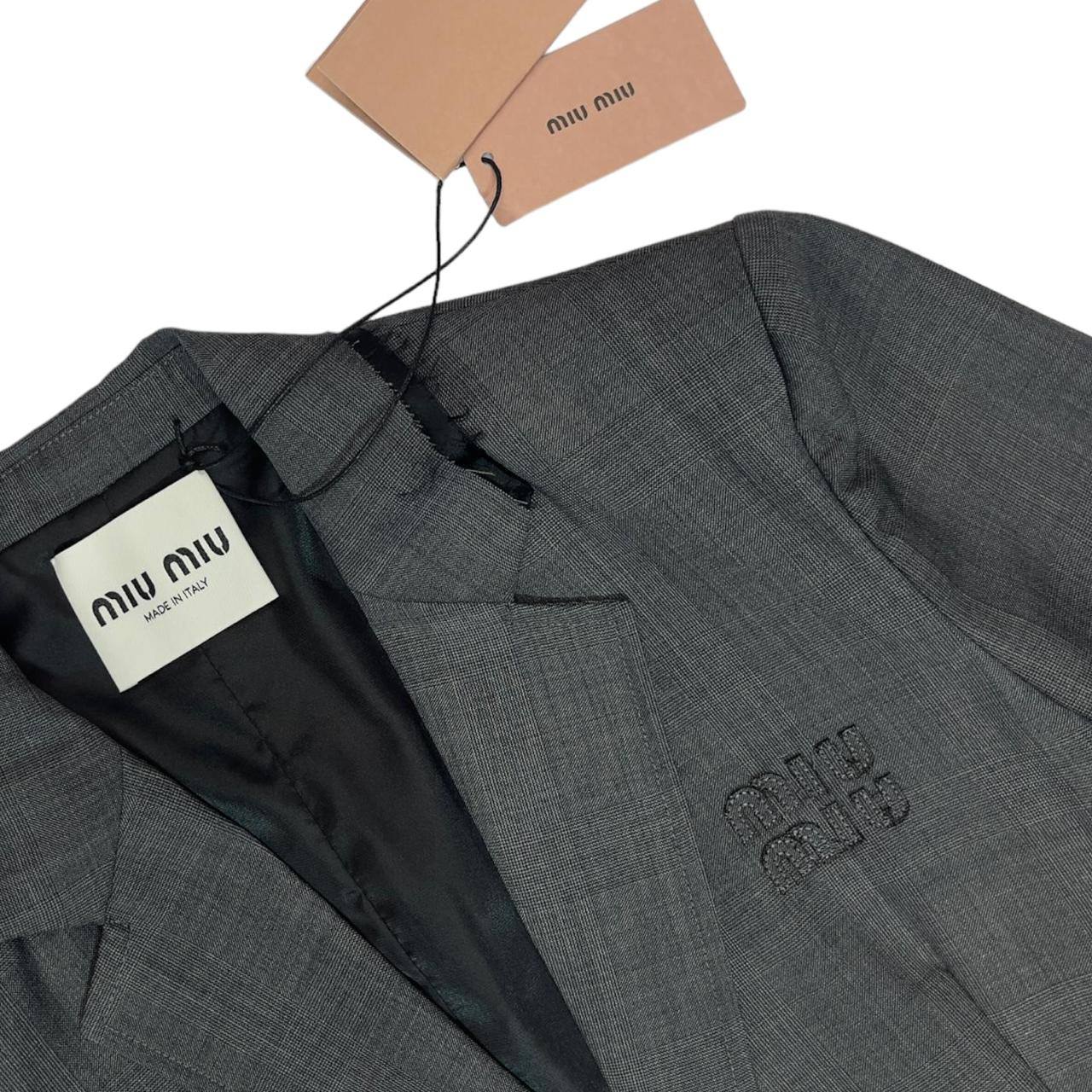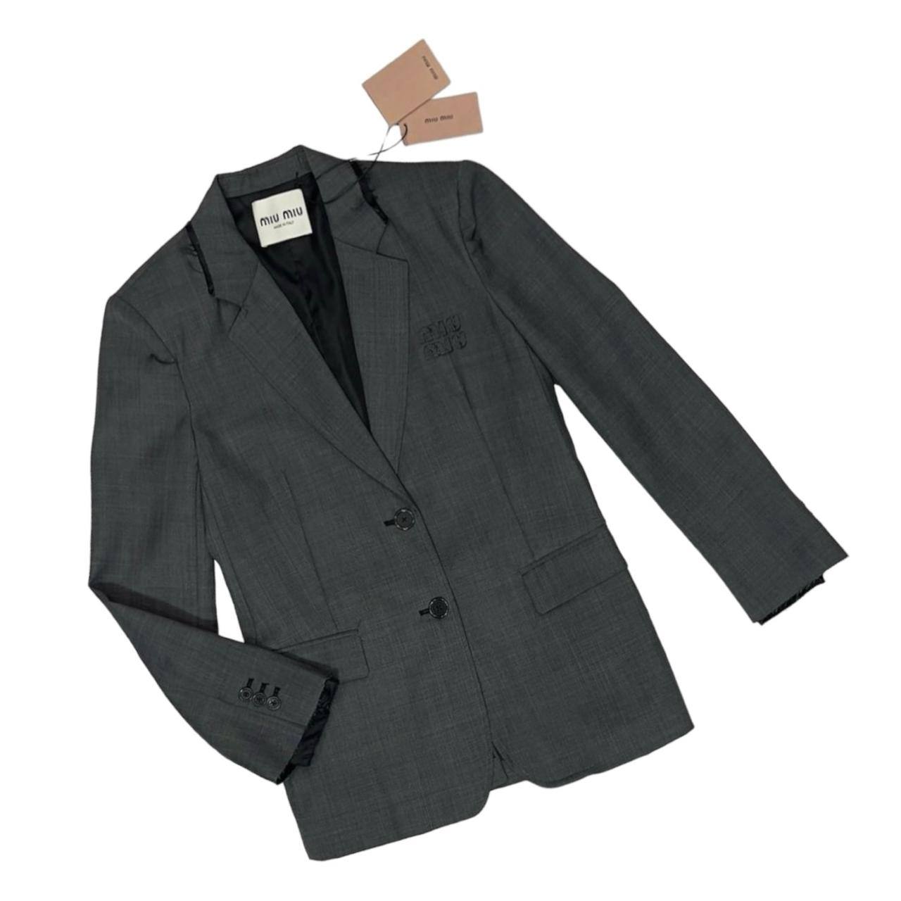 Жакет Miu Miu LUX-109909 – это стильный предмет гардероба, выполненный в классическом стиле. Жакет имеет серый цвет, что делает его универсальным и подходящим для разных образов. Текстура ткани создает элегантный вид, а логотип бренда добавляет изысканности.