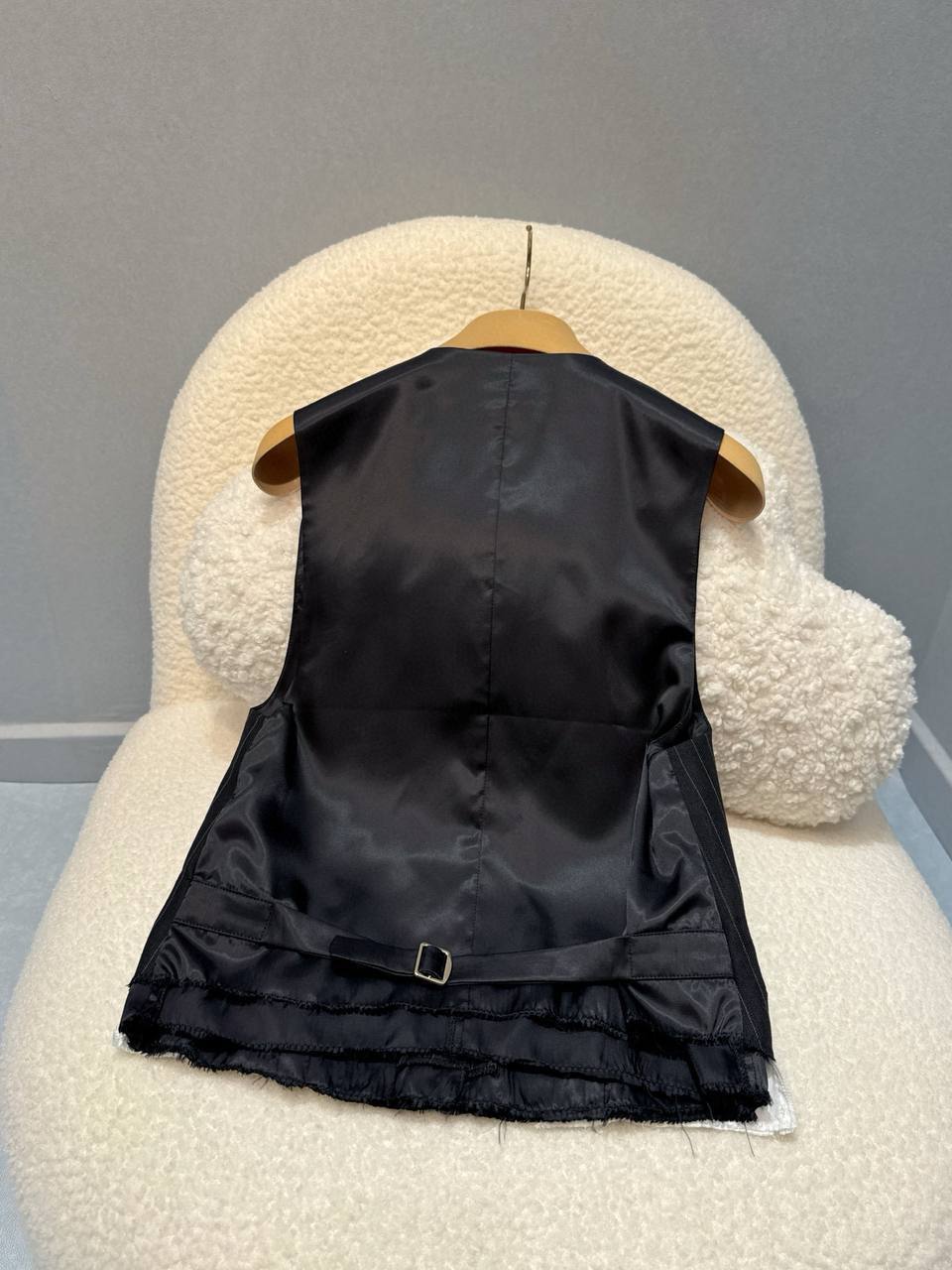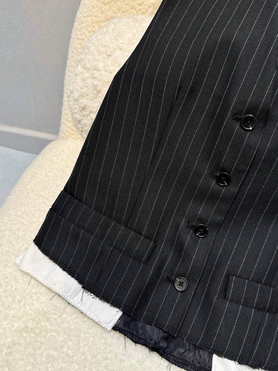 Жилет Miu Miu LUX-115845 - это стильный элемент гардероба, который подчеркнет элегантность и индивидуальность. Жилет выполнен в классическом стиле, сочетая в себе изысканность и современность. Его черный цвет и полосатый узор придают образу деловой шик, а крой подчеркивает фигуру.
