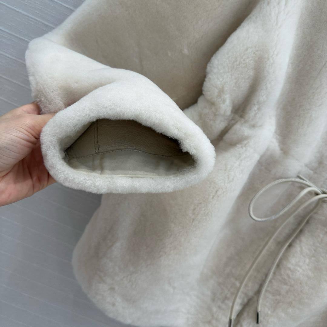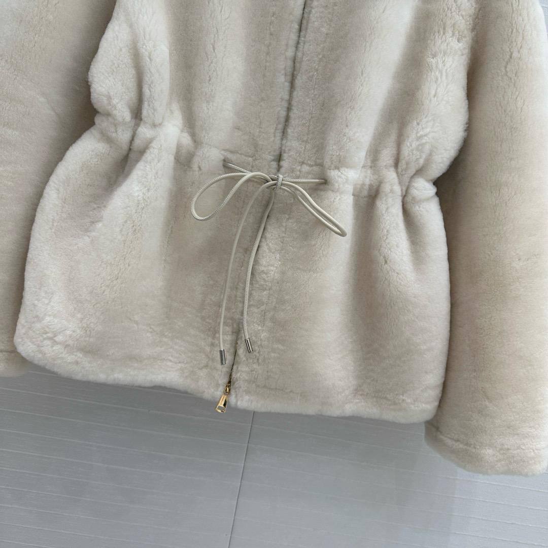 Дубленка Moncler LUX-113154 — это воплощение элегантности и комфорта. Дубленка выполнена в кремовом цвете, с округлым вырезом и центральной молнией. Модель с поясом на талии придает женственный силуэт.