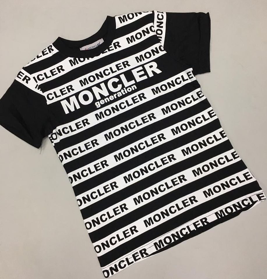 Эта футболка Moncler LUX-29276 сочетает в себе спортивный стиль и узнаваемый дизайн бренда. Черный фон с контрастными белыми полосами, на которых повторяется логотип "MONCLER" и надпись "generation", создает динамичный и современный образ. Идеальный выбор для тех, кто ценит комфорт и модные акценты в повседневных образах.