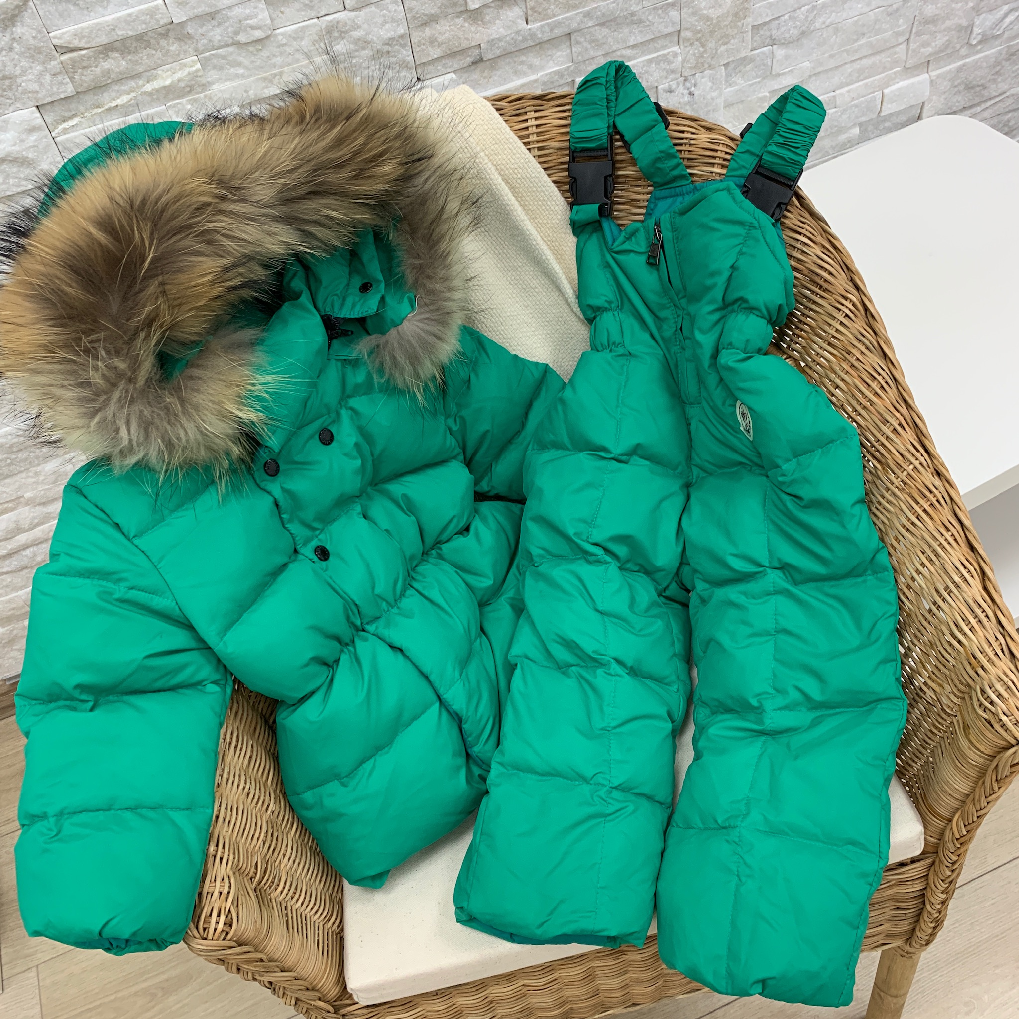 Комплект зимний Moncler LUX-16237 представляет собой стильный и практичный выбор для холодной погоды. Комплект включает в себя пуховик с объемным капюшоном, отороченным мехом, и удобные брюки-комбинезон на лямках. Яркий зеленый цвет и объемная стежка делают этот комплект заметным и модным.