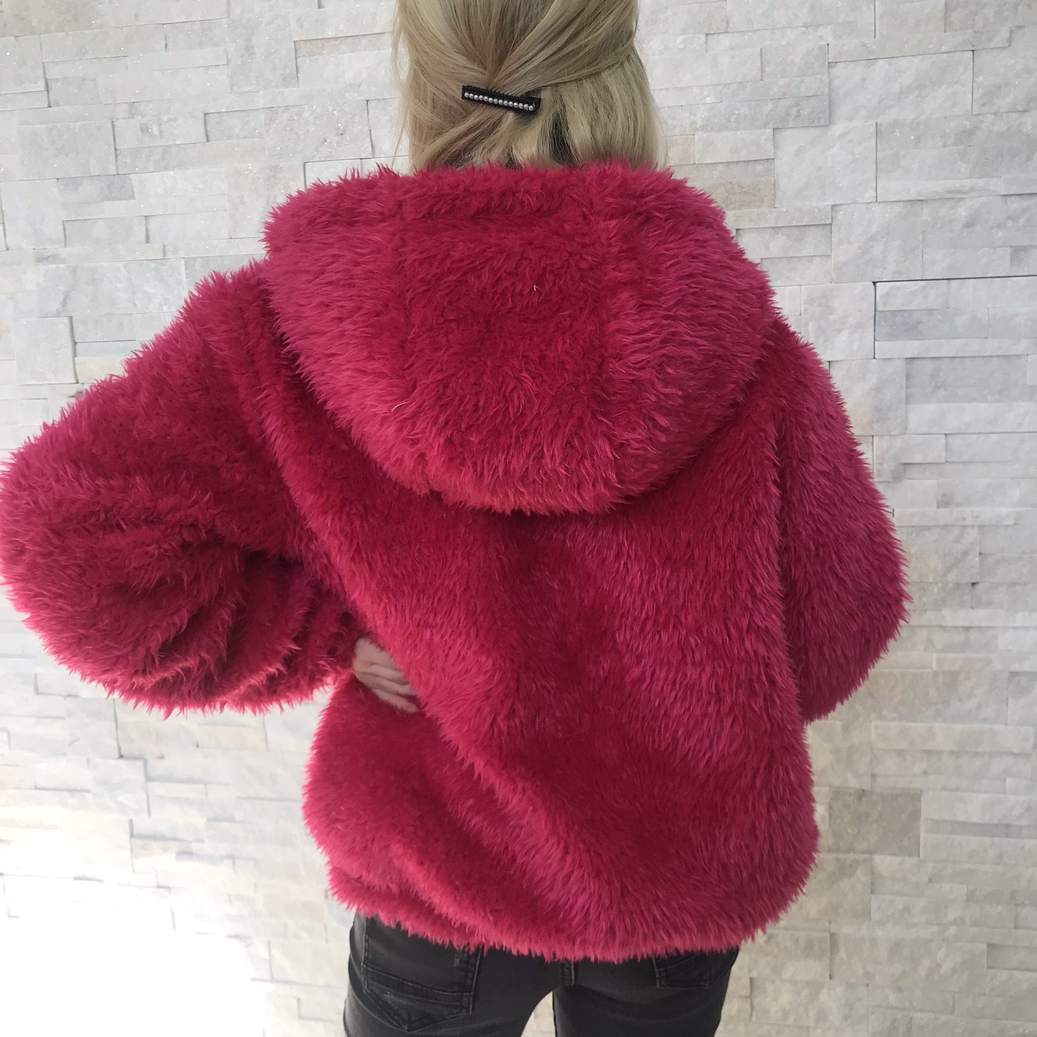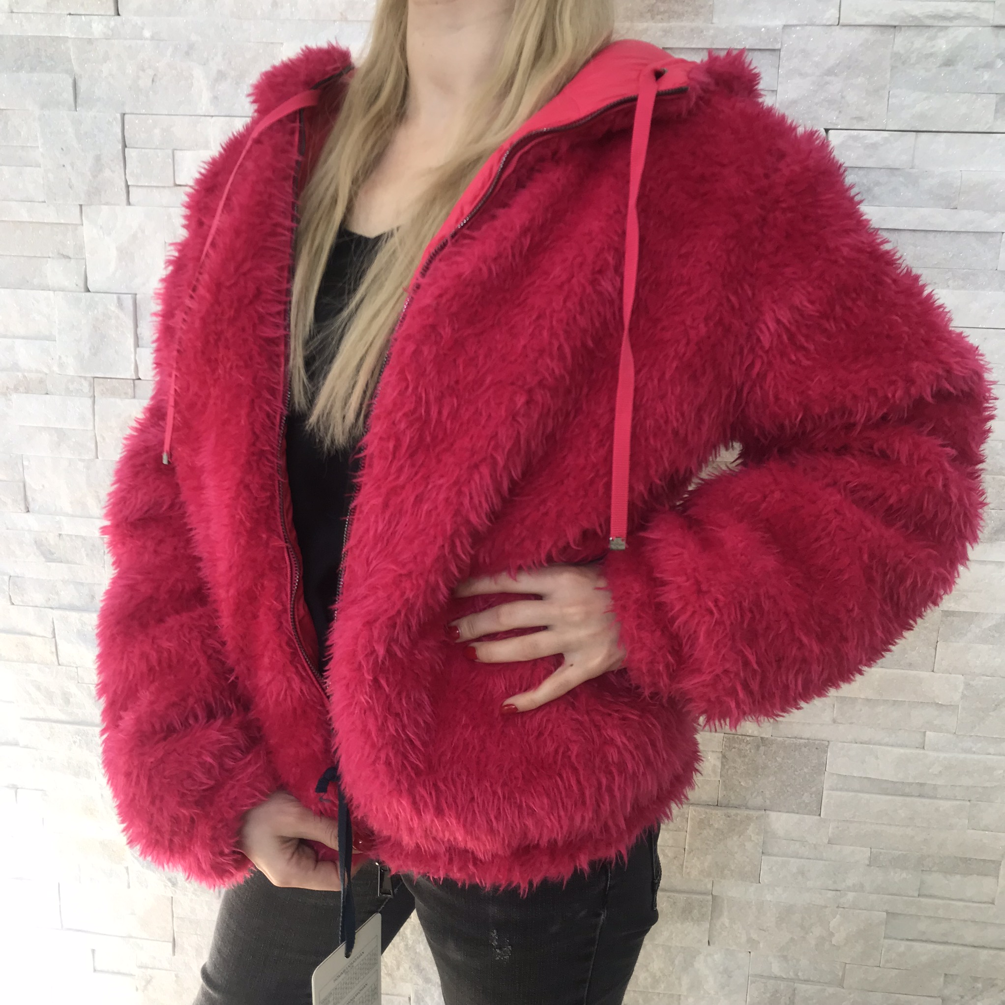 Moncler куртка женская двухсторонняя LUX-17940 – это стильная и модная верхняя одежда, выполненная в современном дизайне. Яркий малиновый цвет и объемный меховой материал делают эту куртку заметной деталью гардероба, а возможность носить ее с обеих сторон обеспечивает вариативность образов.