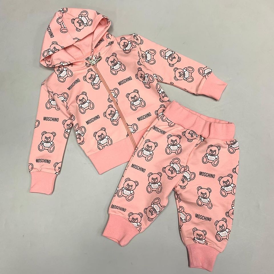 Этот детский спортивный костюм Moschino LUX-28417 в нежно-розовом цвете украшен очаровательным принтом с мишками и логотипом бренда. Костюм состоит из худи на молнии и брюк, выполненных в едином стиле. Это идеальный выбор для создания стильных и комфортных образов для малышей, сочетающий в себе узнаваемый дизайн Moschino с практичностью для повседневной носки.