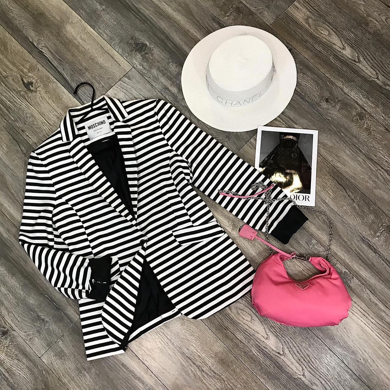 Жакет женский Moschino LUX-32565 — это стильная и выразительная модель, выполненная в классическом черно-белом полосатом принте. Жакет идеально подходит для создания эффектных образов в стиле кэжуал или смарт-кэжуал. Он добавит изюминку любому наряду, подчеркивая вашу индивидуальность.