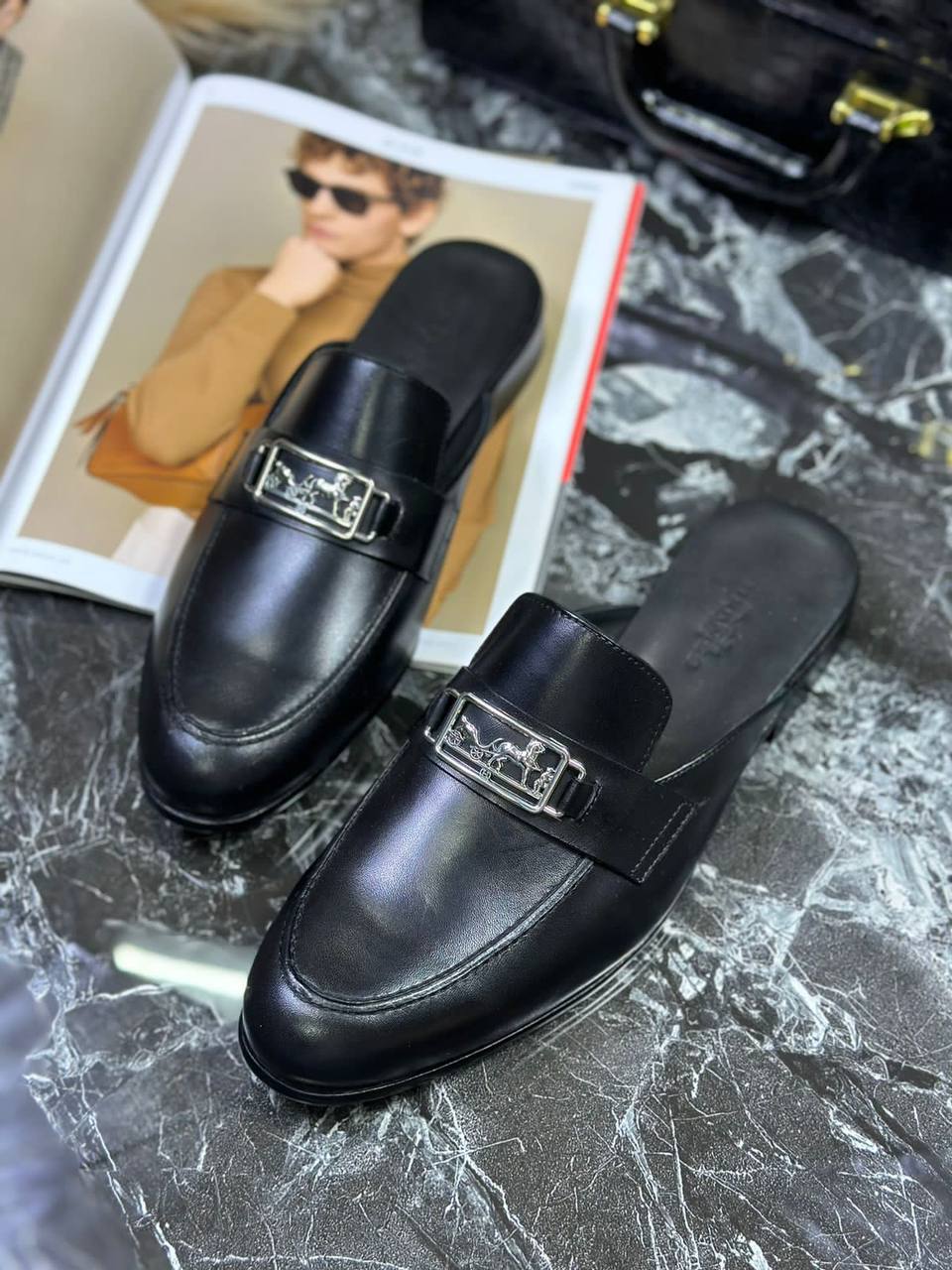 Мюли Hermes LUX-92065 – это стильная и удобная обувь, сочетающая в себе классический дизайн и современный комфорт. Чёрные мюли с серебристой пряжкой идеально подойдут для создания элегантного образа. Идеально подойдут для повседневной носки, а также для особых случаев.