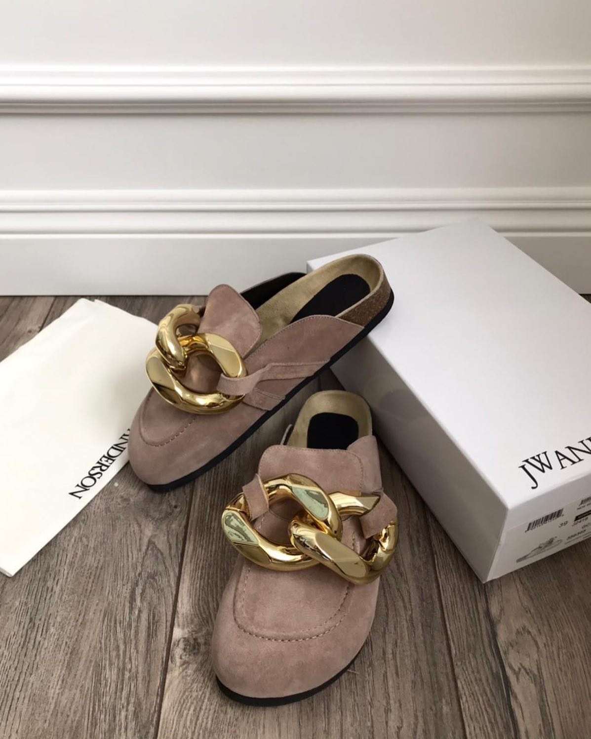 Эти мюли от JW Anderson LUX-47345 представляют собой стильное и элегантное решение для завершения вашего образа. Модель выполнена в лаконичном дизайне с акцентом на массивную золотистую цепь, придающую обуви современный шик. Мюли идеально подойдут для повседневного ношения, добавляя изысканности любому наряду.
