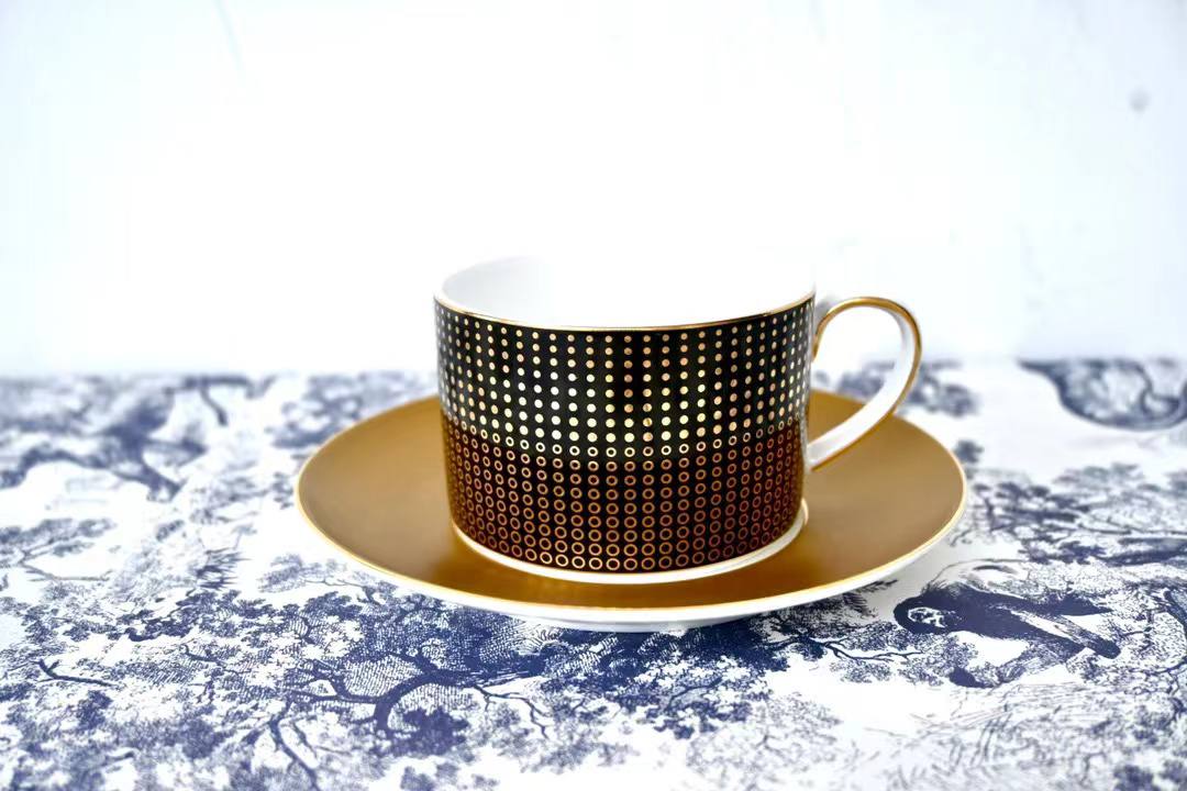Набор 2 предмета Wedgwood LUX-73334 - это изысканный кофейный набор, сочетающий в себе элегантность и утонченность. В наборе чашка и блюдце, выполненные в современном стиле. Черный фон чашки украшен золотистым узором в виде точек, а блюдце выполнено в золотистом цвете, что создает роскошный вид. Этот набор идеально подойдет для сервировки кофе или чая.
