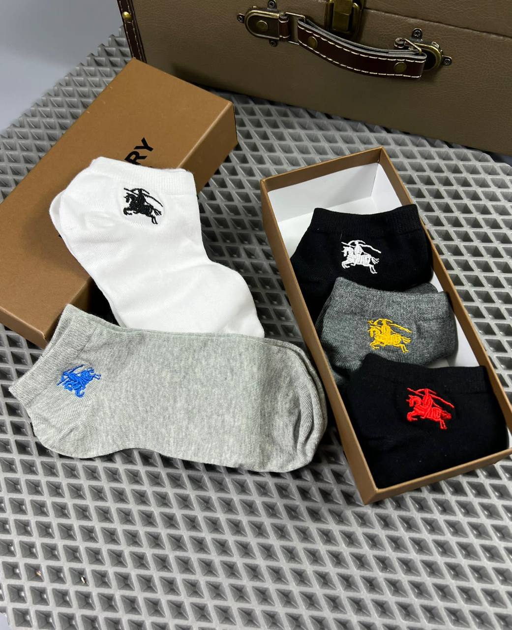 Набор Burberry LUX-69075 представляет собой комплект стильных и комфортных носков, выполненных в лаконичном дизайне, который идеально дополнит ваш повседневный образ. На каждом носке присутствует узнаваемая вышивка в виде всадника, добавляющая брендовый акцент. Этот набор станет отличным выбором для тех, кто ценит качество и элегантность в деталях.