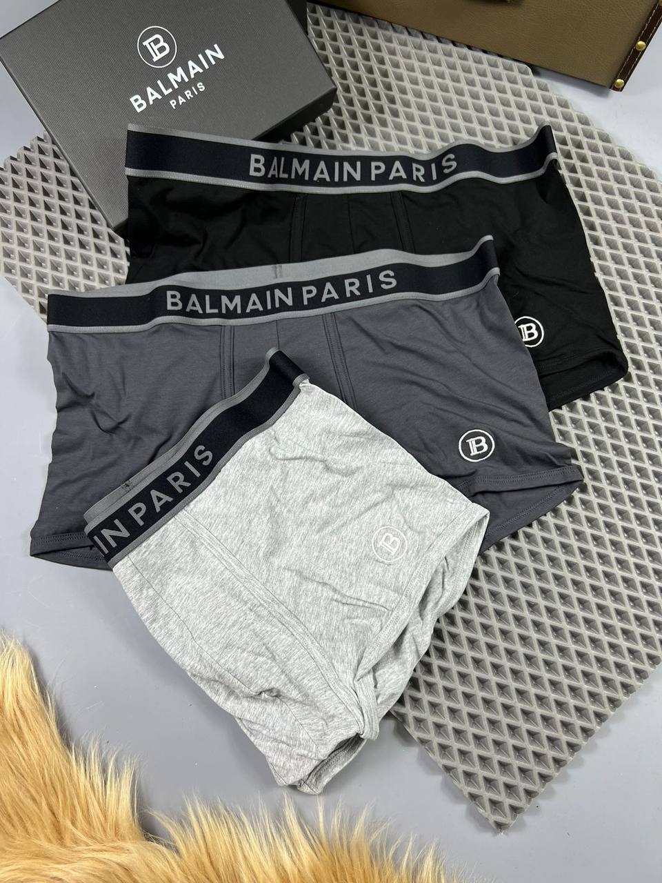 Набор мужского нижнего белья Balmain LUX-69081 представляет собой стильный и комфортный выбор для современного мужчины. Комплект выполнен в классических цветах и украшен узнаваемым логотипом бренда, что подчеркивает элегантность и статус владельца.