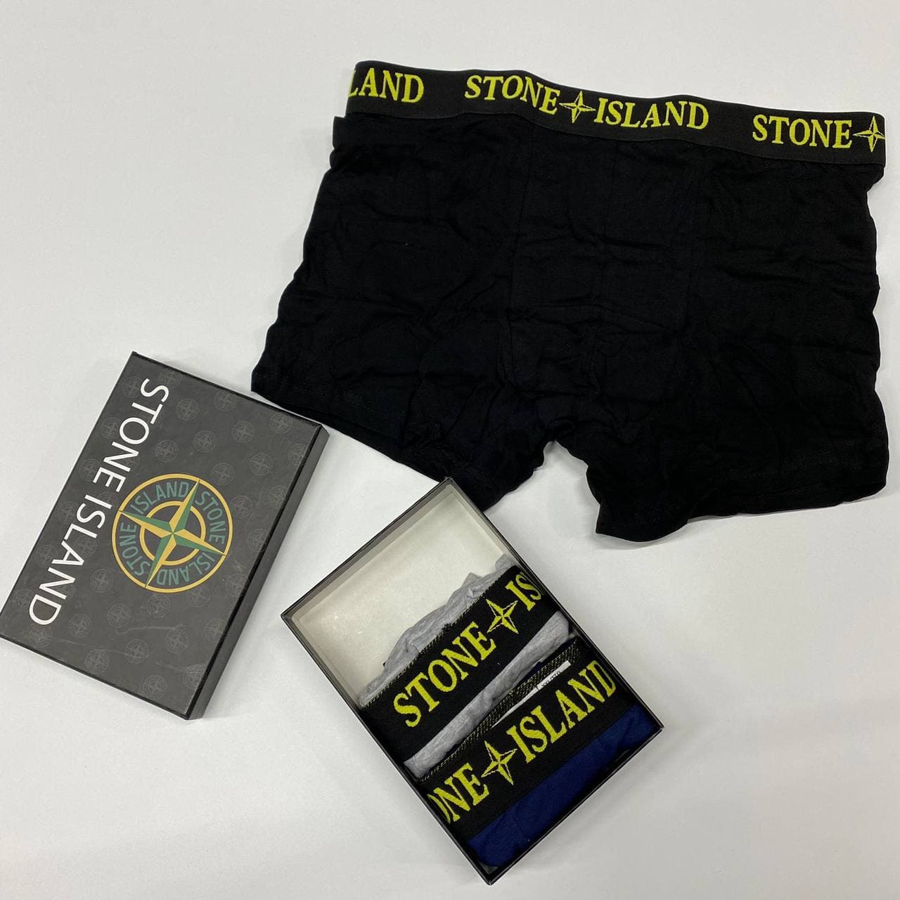 Набор трусов от бренда STONE ISLAND представляет собой стильное и комфортное решение для повседневного использования. Черные боксеры декорированы эластичной резинкой с узнаваемым логотипом бренда, выполненным в ярком желтом цвете. Этот набор подчеркнет ваш безупречный вкус и приверженность качественной одежде.