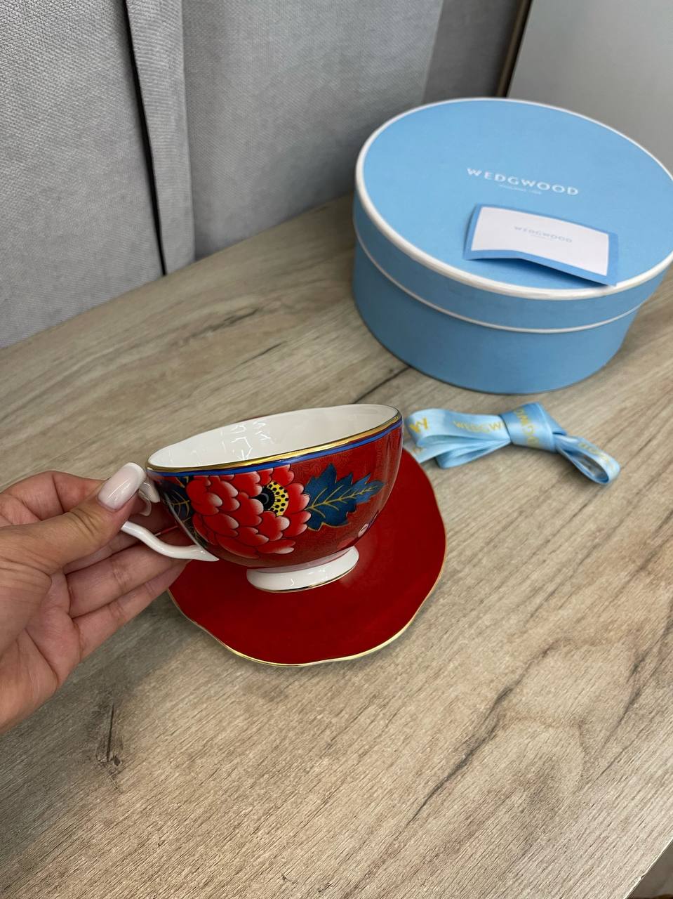 Набор Wedgwood LUX-73327 представляет собой элегантную чайную пару. Красный цвет чашки и блюдца дополнен золотистой отделкой и красочным цветочным узором, создавая изысканный вид. Классический дизайн чашки и блюдца подчеркивает премиальное качество набора.