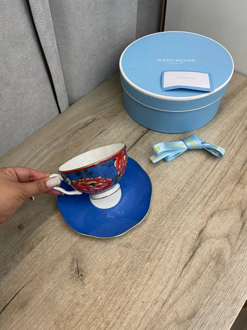 Набор Wedgwood LUX-73328 представляет собой изысканный предмет сервировки, выполненный в фирменном стиле Wedgwood. Основные цвета набора: синий, белый, красный и золотой. Чашка и блюдце украшены цветочным узором, что придает им элегантный и утонченный вид. Набор идеально подходит для подачи чая или кофе.