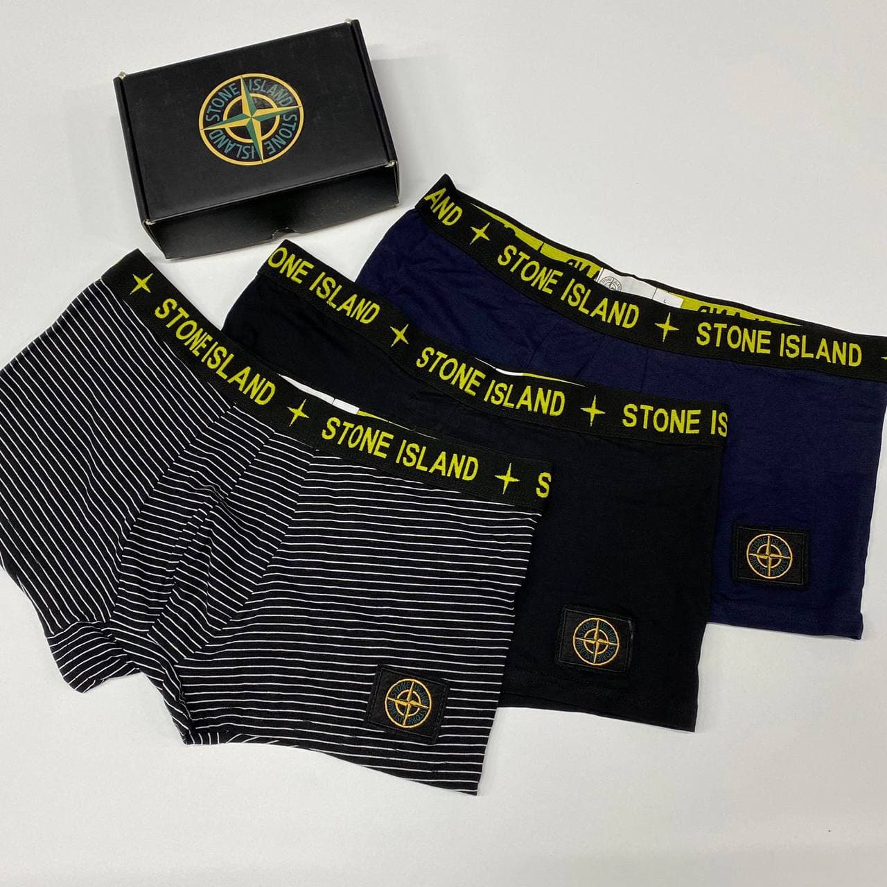 Набор мужского нижнего белья от Stone Island LUX-58641 представляет собой стильное и комфортное решение для повседневного гардероба. В комплекте представлены боксеры в классических цветах: черном, темно-синем и в полоску, с узнаваемым логотипом бренда.