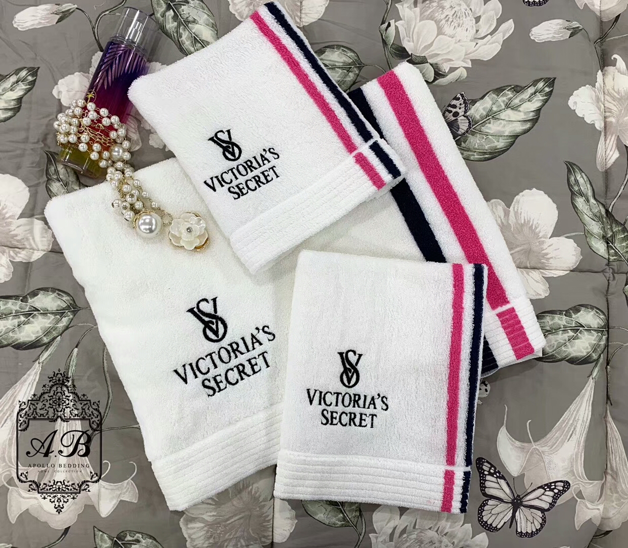 Этот набор полотенец Victoria`s Secret LUX-24424 выполнен в классическом белом цвете с элегантными полосами розового и темно-синего оттенков. Логотип бренда "Victoria`s Secret" изящно вышит черными нитками, добавляя изделию узнаваемость и стиль. Полотенца созданы для придания ванной комнате нотки роскоши и комфорта.