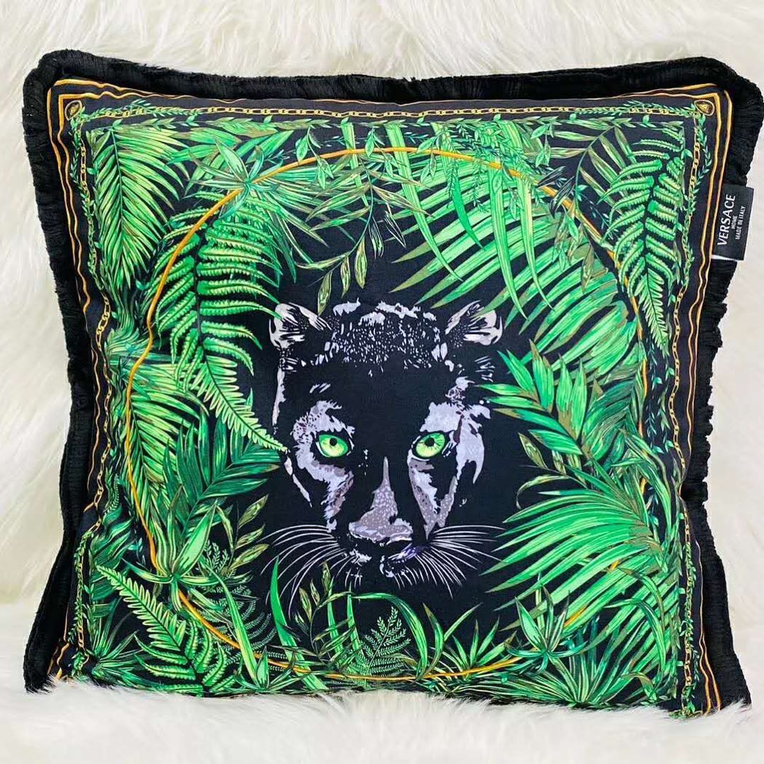 Эта наволочка для декоративной подушки от бренда VERSACE, выполненная в стиле джунгли, станет ярким акцентом в вашем интерьере. Изображение черной пантеры, окруженной пышной тропической зеленью, придает подушке экзотический и роскошный вид.