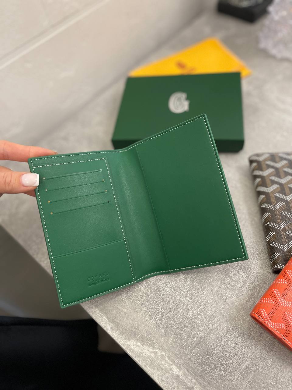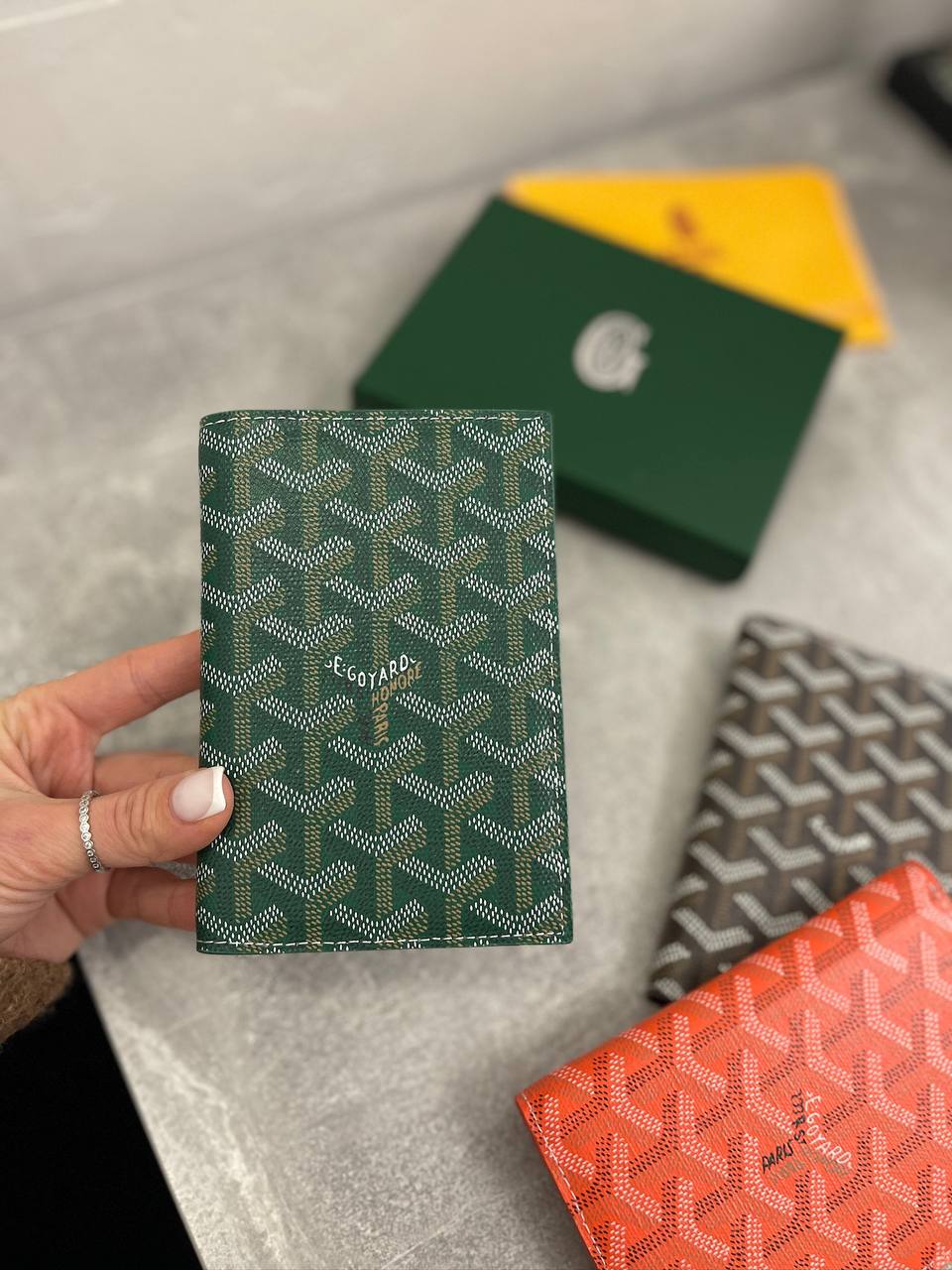 Обложка на паспорт LUX-99892 от бренда GOYARD - это стильный аксессуар для хранения и защиты вашего паспорта. Обложка выполнена в классическом стиле с узнаваемым узором в зеленых тонах, придающим изделию элегантность и узнаваемость. Она станет отличным дополнением к вашему образу, подчеркивая ваш вкус и статус.