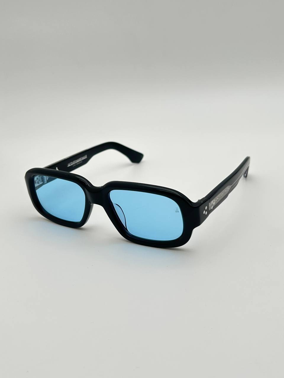 Очки JacquesMarieMage LUX-114953, представленные на изображении, — это стильный аксессуар с прямоугольной оправой черного цвета и голубыми линзами. Очки подходят для повседневного использования, дополняя образ и защищая глаза от солнца.