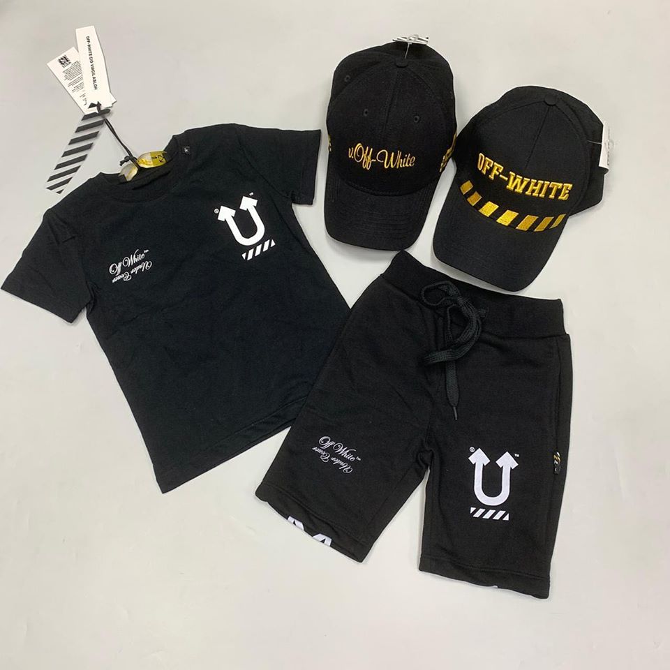 Стильный черный костюм Off-White™ LUX-29304, состоящий из футболки и шорт, идеально подходит для создания современных повседневных образов. Комплект выполнен в спортивном стиле с узнаваемыми элементами бренда.