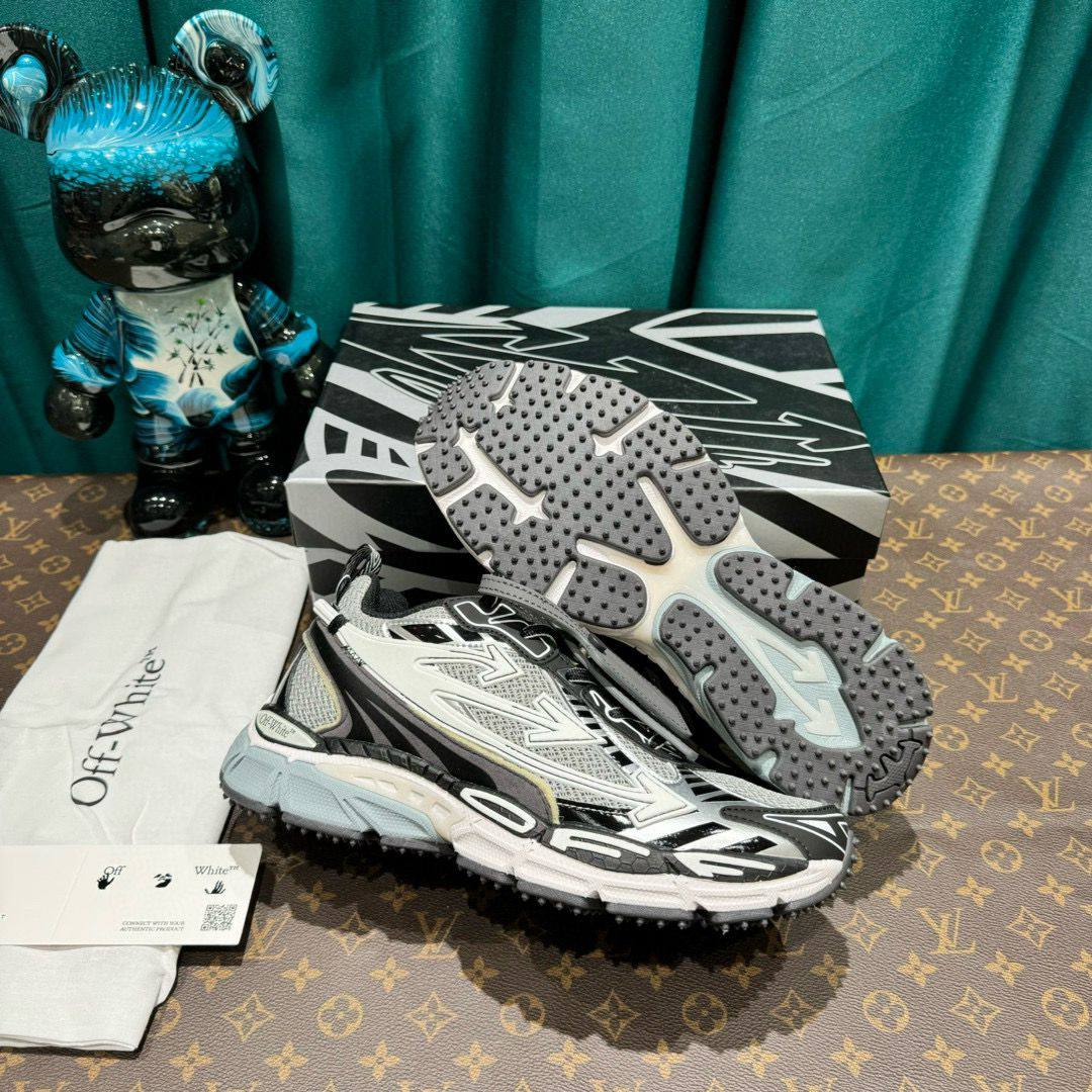 Кроссовки Off-White™ LUX-108362 сочетают в себе элементы спортивного и повседневного стиля. Они выполнены в основном в серо-белой цветовой гамме с черными и голубыми акцентами. Дизайн кроссовок отличается многослойностью и оригинальными деталями.